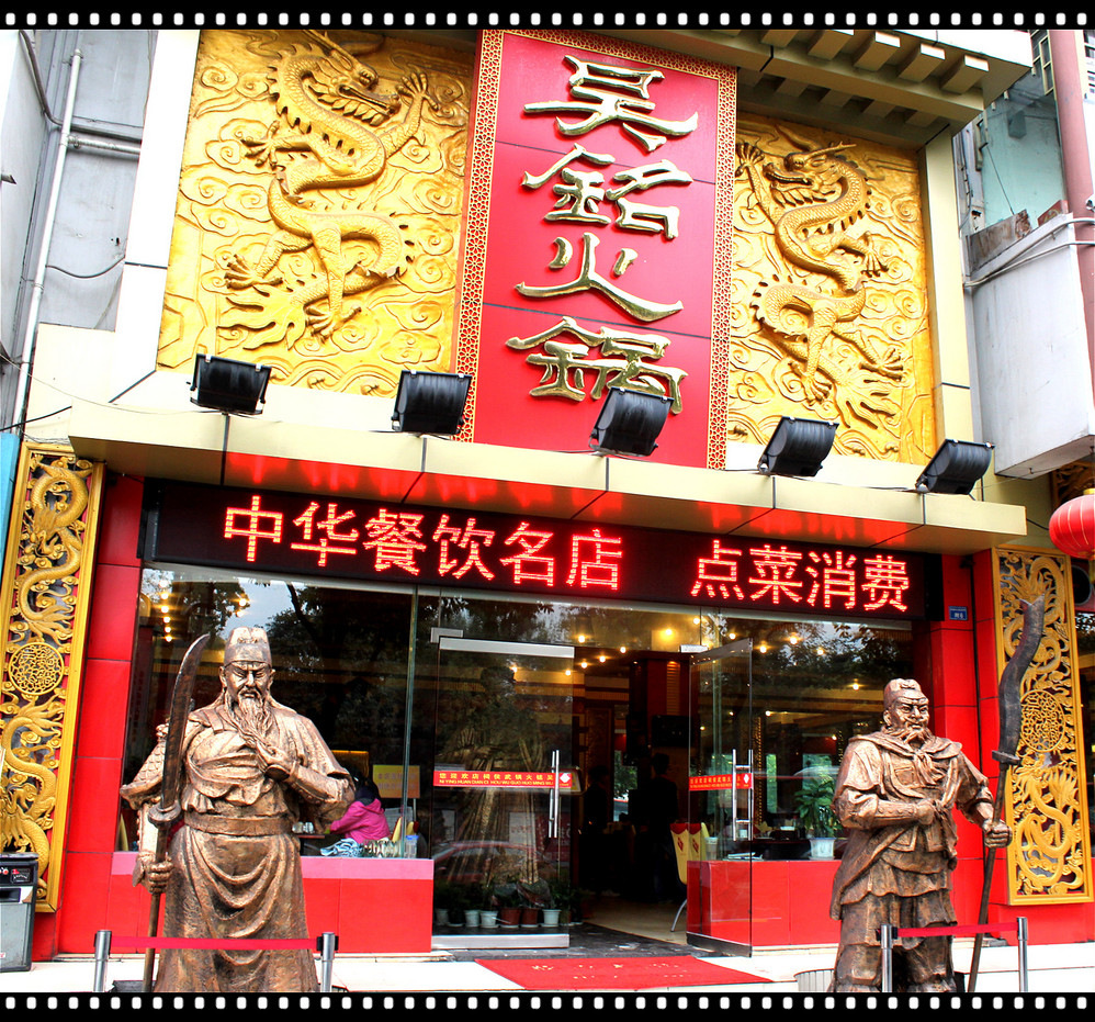 晚上很热闹,可以在周围的饭店里吃晚饭,也可以不吃饭,有很多卖小吃的地方。天黑后里 面有很多茶馆和酒吧,有室内的也有露天的。经过多方了解不建议在此就餐,因为味道不正,当然满足外地普通游客也就绰绰有余了。不过大家既然来到成都 就要吃最正宗、最本土的美食。建议大家可以忍忍,从锦里出来左拐走五六分钟就到了耍都,途中还有一家红星兔丁,味道也不错。耍都入口是一品香粥店,不远就是胖妈烂火锅,往里走就是各种小吃聚集地了。我去的时候里面几乎没人,小吃摊也都不开,估计现在只做夜市吧,毕竟不是周末又属于旅游淡季。往里面第一条巷子有成都 大名 鼎鼎的蜀九香火锅,虽然不是饭点里面人却不少,看来确实有名啊。蜀九香旁边就是锦城印象,也是很有名的火锅店。舵主推荐的武侯祠右侧的皇城坝小吃也很不错。