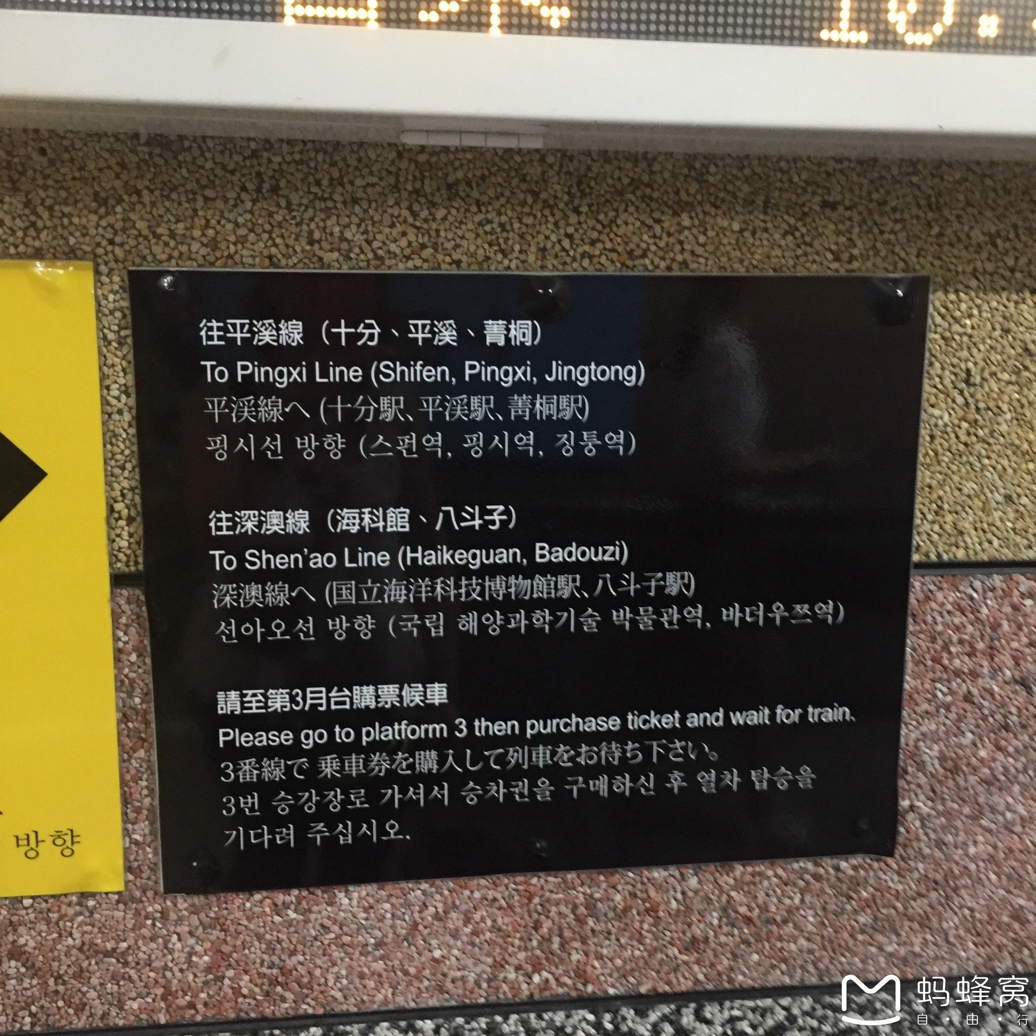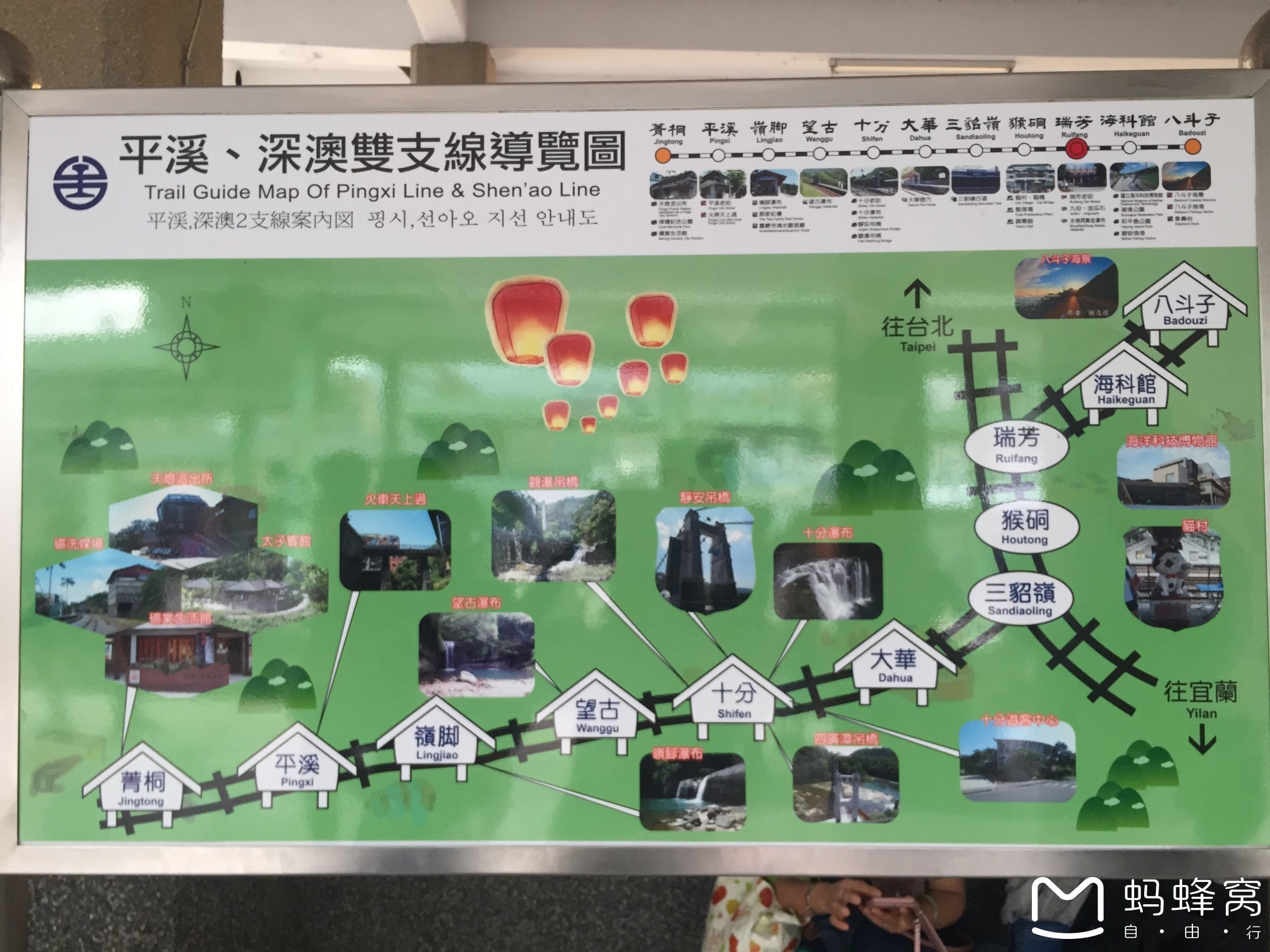 Tips:在瑞芳火车站要先到西出站口寄存行李,再购买平溪线车票进站去往东出站口方向的平溪线站台—两个出站口有地下通道连接。(寄放行李处:营业到晚上8点,一件行李50新台币)