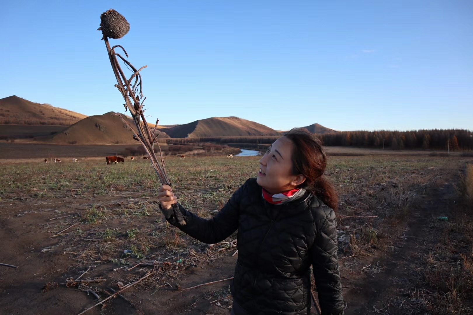 进山路上有个美丽的路边,随手记捡起一个冻成冰的向日葵好美,晶莹剔透