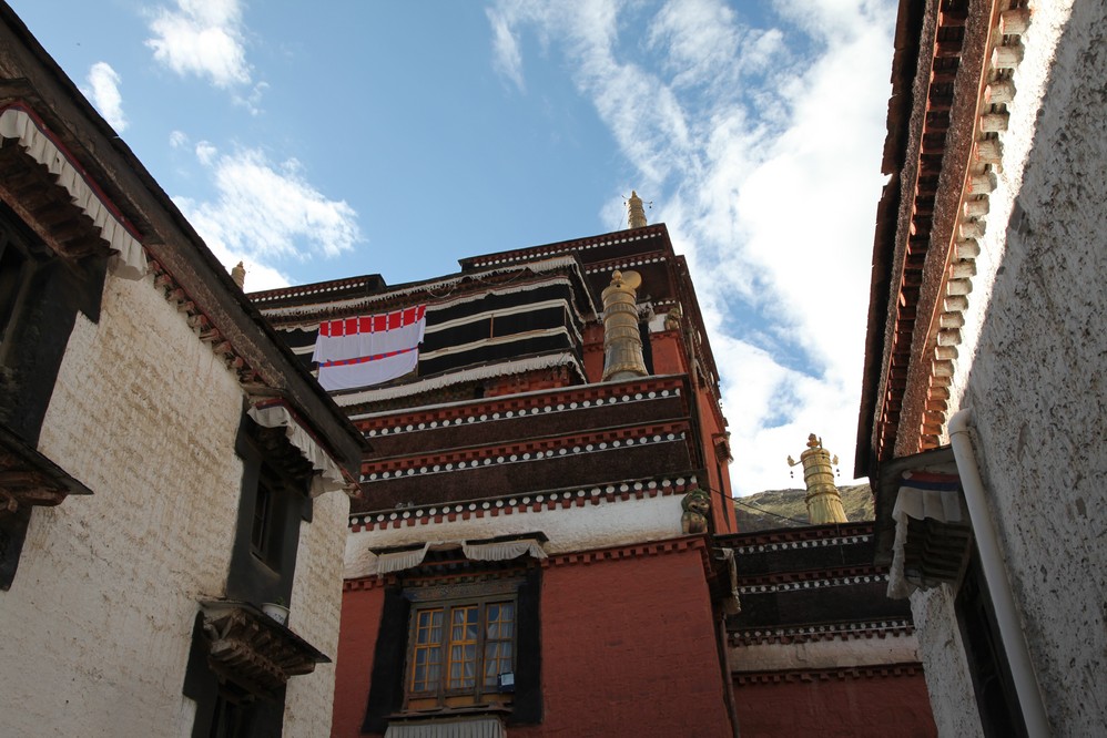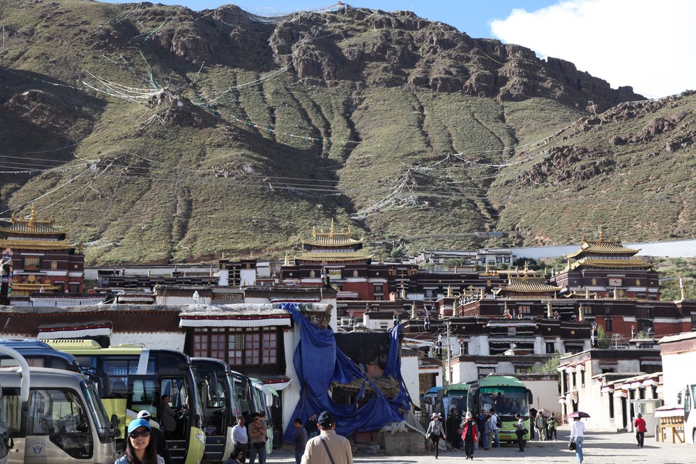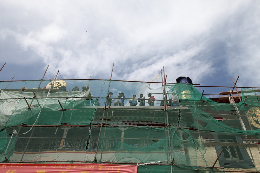 離開整鞗中的色拉寺時, 聽見整齊劃一的嘹亮歌聲, 原來是寺頂的工人在唱著, 不錯, 既可振奮工作精神, 也可自娛娛人.