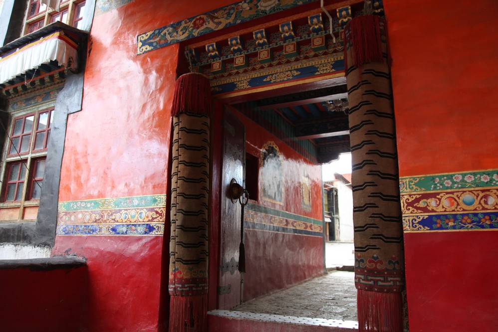 門旁的法柱, 代表無上的權利, 只有達賴及班禪才能擁有.