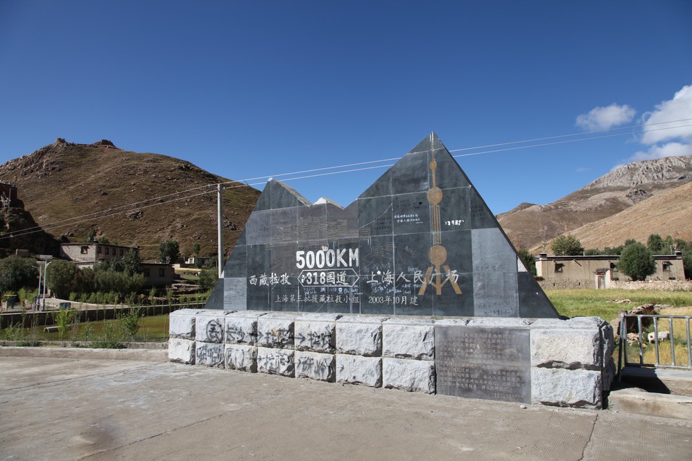 這裏標誌著: 國道318,自上海 人民廣場到這西藏 的拉孜 ,剛好5000公里, 大家都下馬休息, 順便拍拍照.因這塊是會上海 支援的,所以相關上海 的訊息較多.