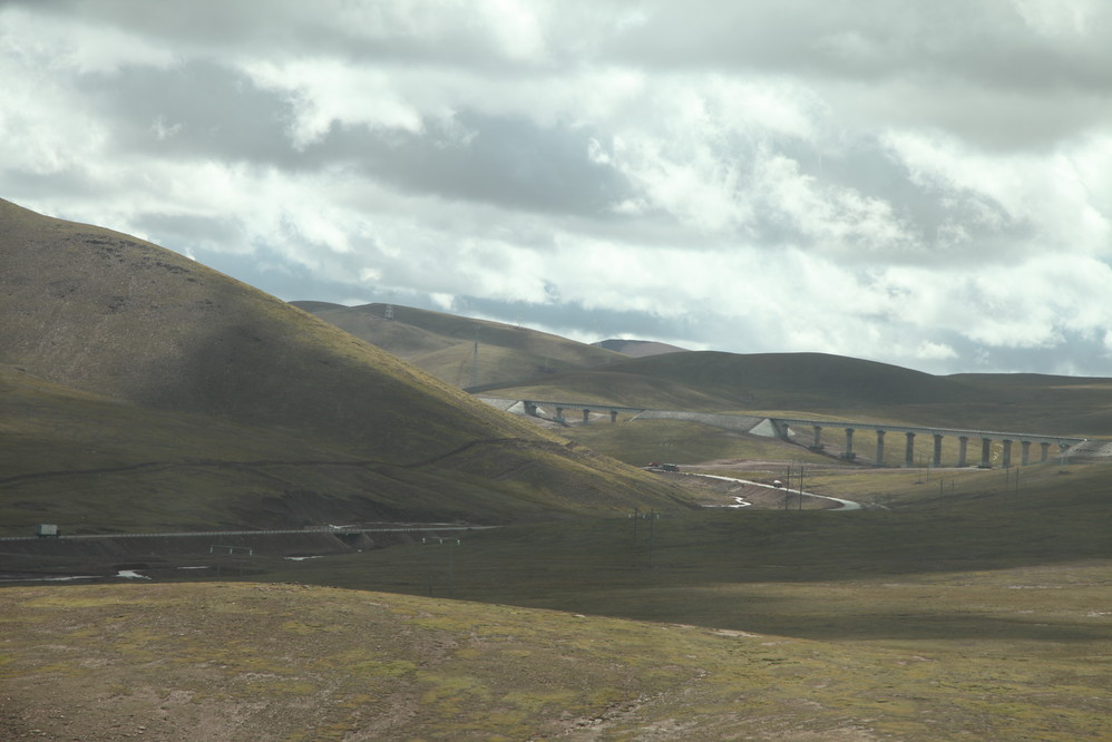 列車奔馳在青藏高原上, 感覺我們是依著劉家昌的"中華民族頌"這首歌在行進.