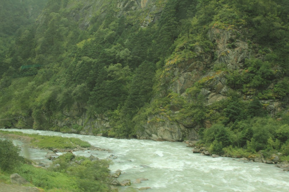 兩旁的山壁,有很明顯的紋理捲曲, 代表這裏的地殼曾經歷過巨大的變動及擠壓, 印証喜馬拉雅山的隆起.
