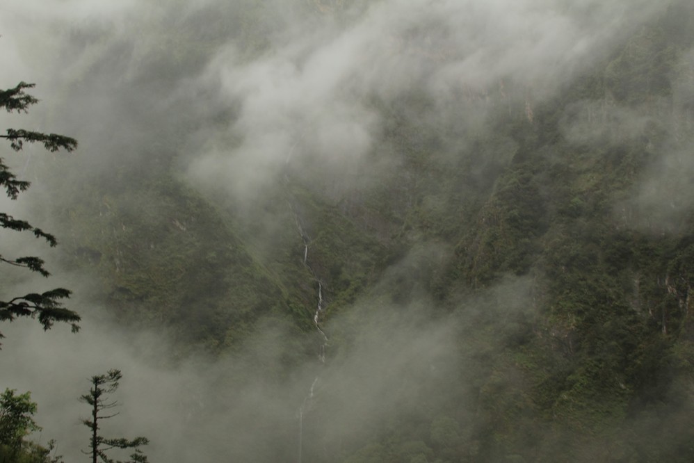 隨著陣陣的驚呼, 我們再度墜入另一個仙境, 因為下雨, 整個山谷雲霧遼繞, 有人說, 這裏, 比黃山還美, 馬上有人接口: 黃山算什麼, 那裏只是一小片, 這裏是幾十座山.