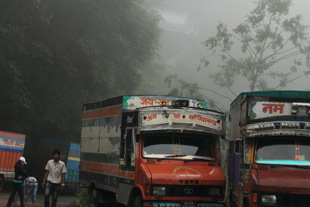自樟木 到邊境檢查站還有約30分鐘的路程, 沿路都是排隊出境的貨車, 還真擔心在這狹小的山路上如何會車, 還好, 因邊境尚未到達開放的時間, 對面不會有車來.