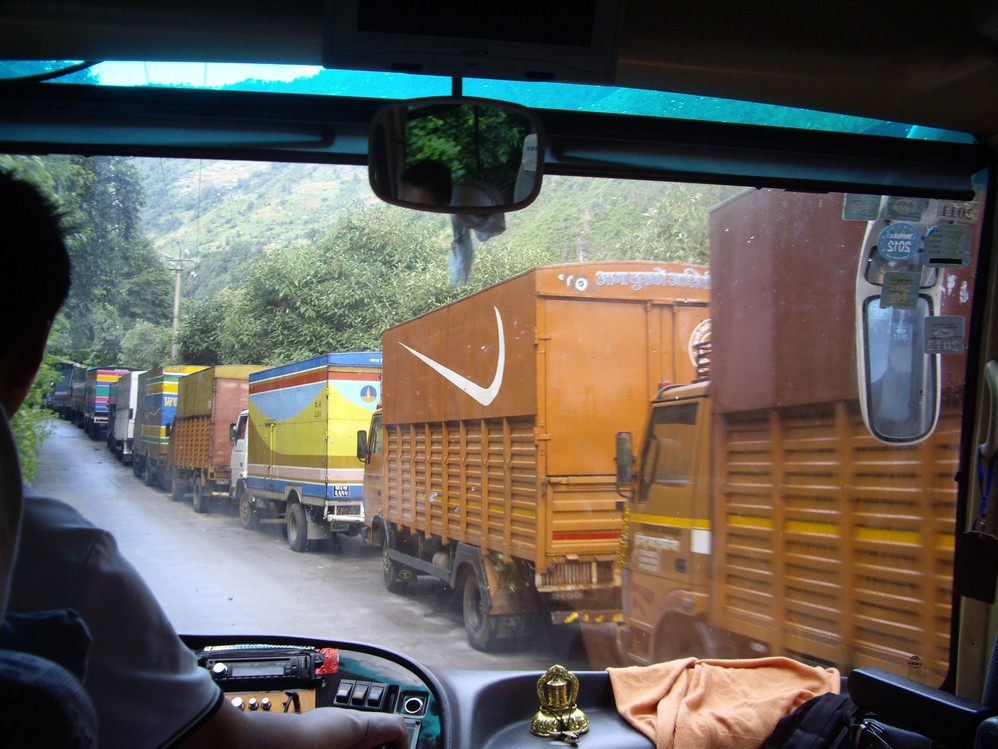 看到越來越尼泊爾文的車時, 樟木 , 我們今天的目的地, 即將到達.