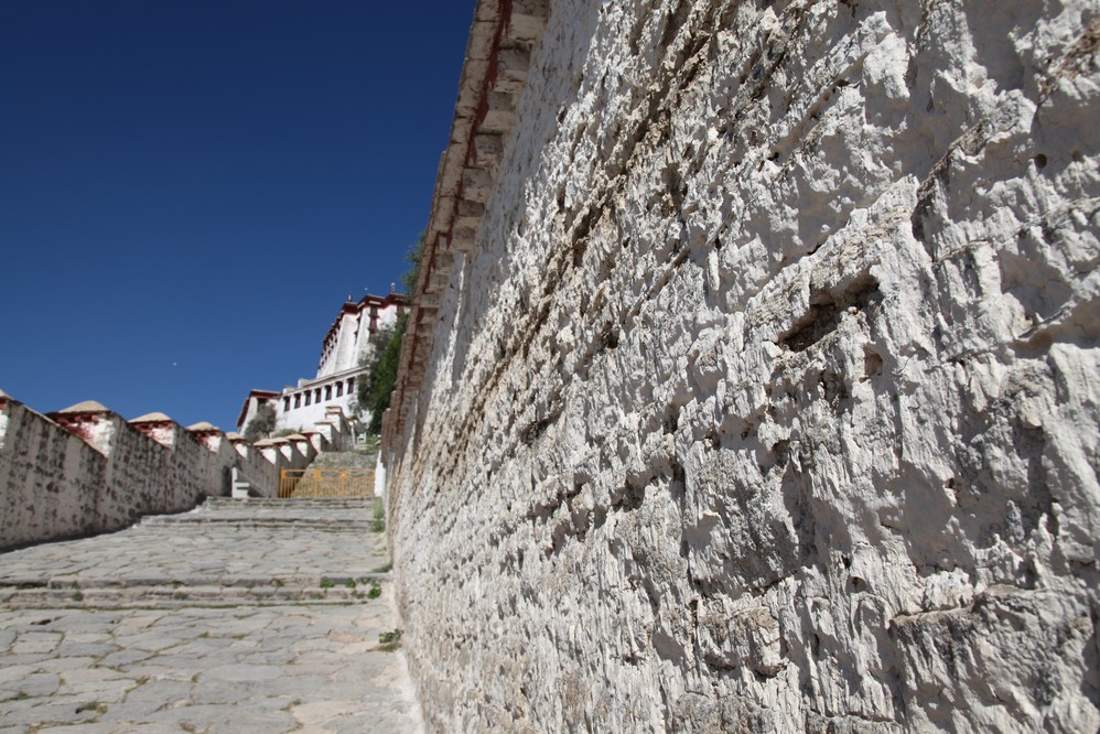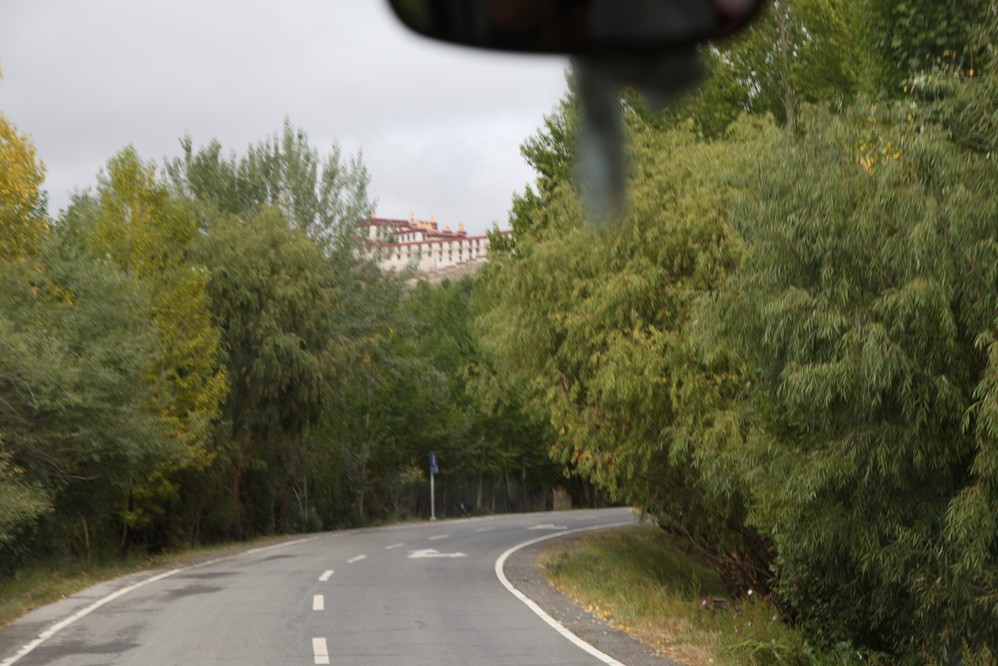 離開札什倫布寺, 路經商業徒步區, 可能因時間還早, 並沒什麼人潮, 所以還是早點回飯店休息, 為明天儲備能量. 從飯店的窗口往外看, 還可看到一幢神似布達拉宮的建築.應也是早期的行政中心吧.