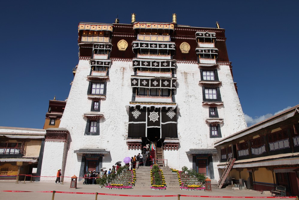 世界上海 拔最高的古代宮堡式建築群——有“高原明珠”之稱的布達拉宮 ,它始建於西元七世紀,共13層約119米高,自五世達賴喇嘛以來一直是西藏 的政治和宗教中心.
