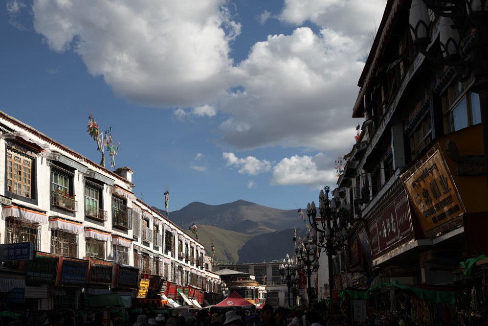 西藏 的陽光非常的艶麗, 因水氣被喜馬拉雅山給擋住了, 所以這邊的草木, 相對的稀少, 而目前的西藏 ,到處可見太陽能的運用, 乾淨的能源, 也符合這裏地廣人稀的建設需求.