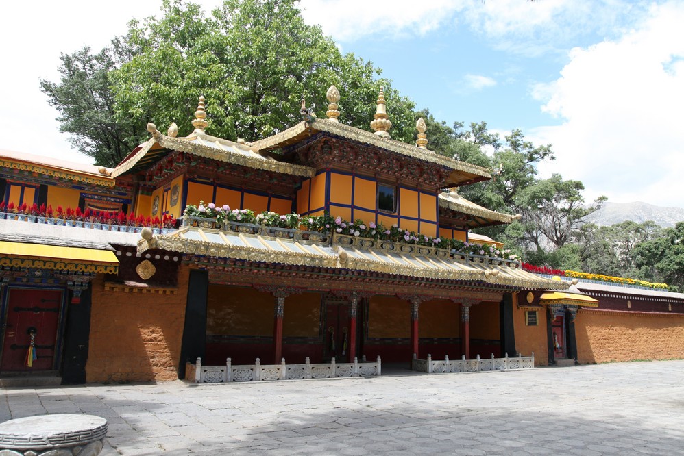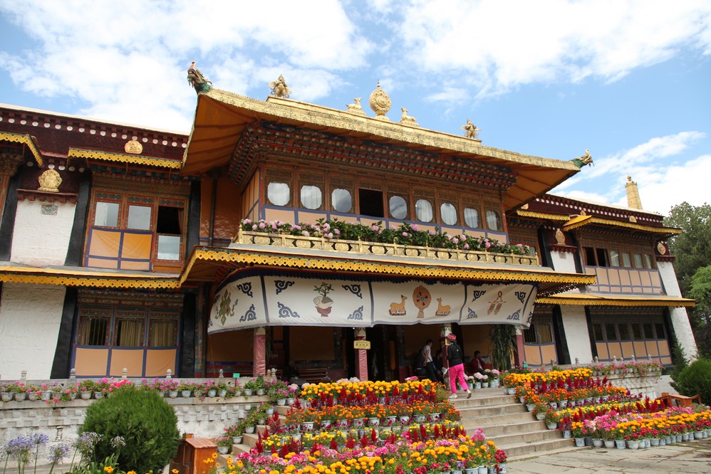 建築以格桑頗章、金色頗章、達登明久頗章為主體,有房374間,是西藏 人造園林中規模最大、風景最佳的、古跡最多的園林。