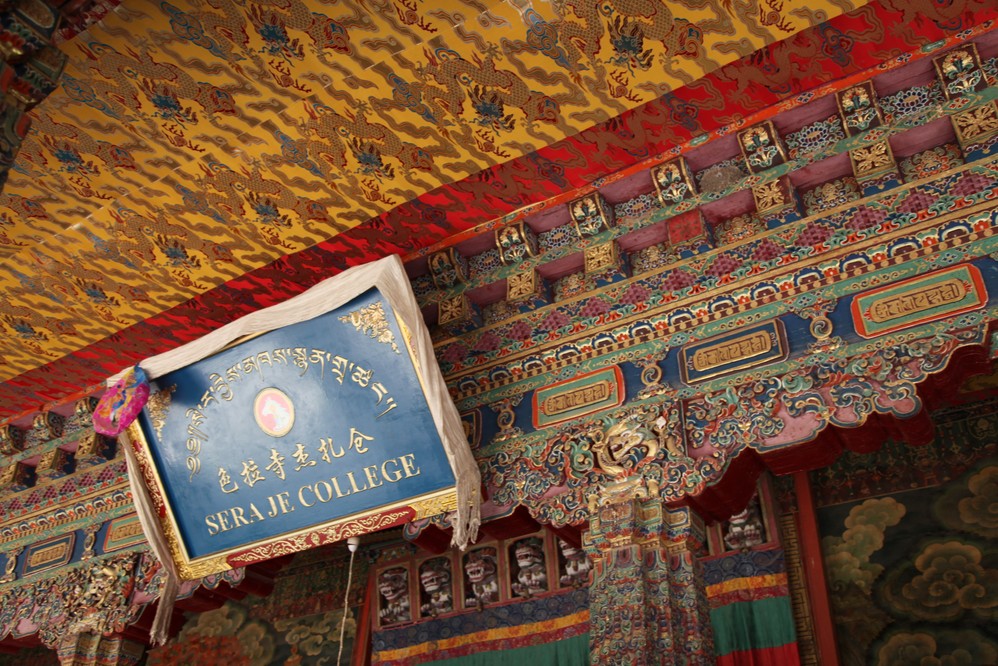 Array 寺內有結巴、麥巴、阿巴三劄倉(經院)。其全盛期寺中有僧8000餘,規模略次於哲蚌寺 。沙拉寺 雖不如哲蚌寺 宏大多彩,但這裡的辯經活動絕對是非常有特色的。Array