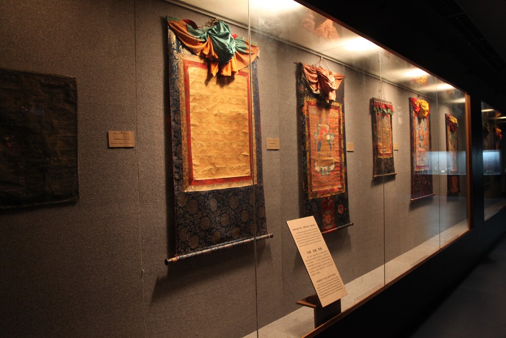 西藏 博物館具有鮮明的藏族傳統建築藝術特點,收藏繁多, 令人歎為觀止, 而唐卡即為特有的藏族風味, 小小一幅, 達數萬美元的比比皆是, 但我是外行人, 在此看看即可, 哈, 買不起。