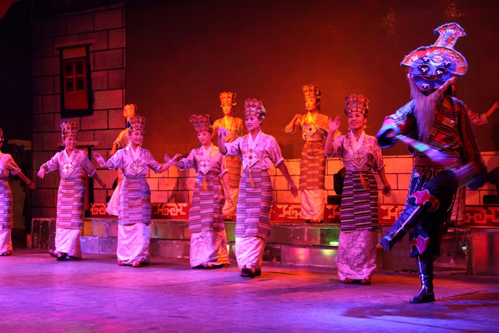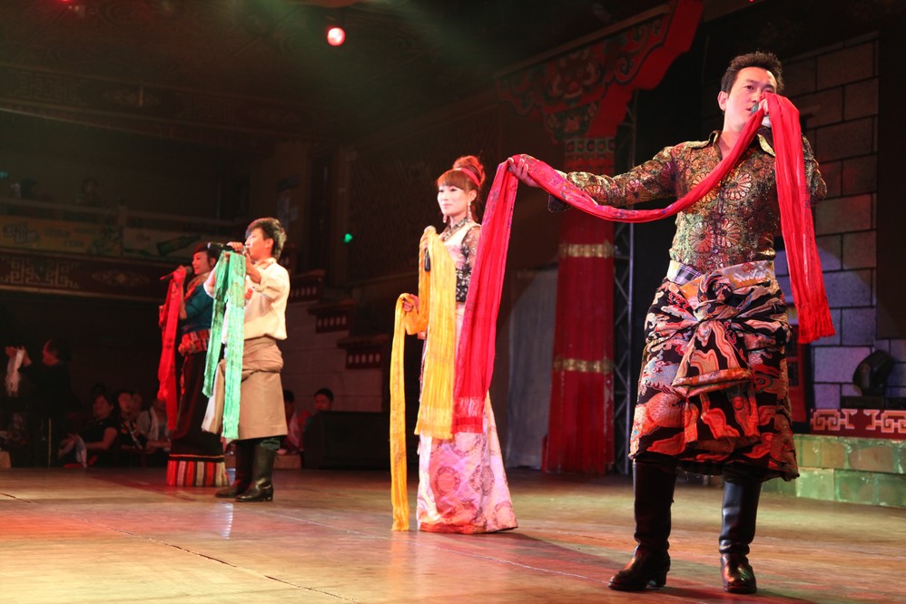 聽說在拉薩市內也可觀看獨俱藏族人文色彩的大型歌舞晚會。我們決定去看看, 畢竟今晚已是在拉薩的最後一晚了.