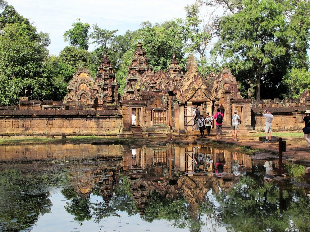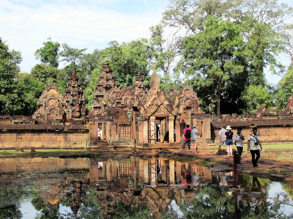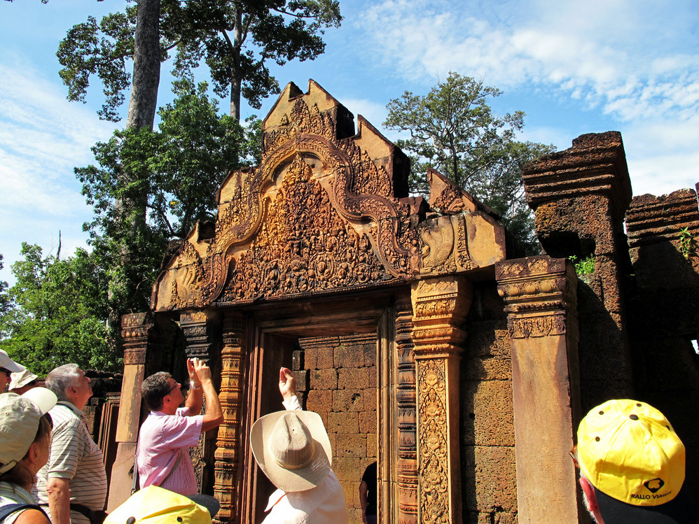 杜生告诉我们,因崩密列路程较远,所以安排了小汽车,按先到比粒寺——女王宫——崩密列,傍晚回到巴肯山观日落的线路出行。
