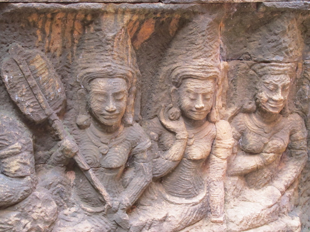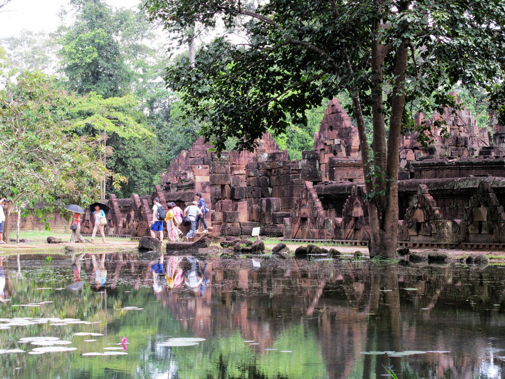 在女王宫除了初步领略吴哥窟 的精美外,还看到一群因被地雷炸而肢残的男人吹弹着简单的乐器,向游客兜售他们的CD,我不敢久留,被炸的都是为生计而奔波的精壮男丁,都是一家的顶梁柱,现在他们只能看游客的心情给予施舍,我怕看他们的眼神,但几天下来我对这群人及他们的国家有了新的看法,除了看到有组织的演奏,没在任何一个景点看到有残疾人乞食,说真的他们有这个权利!从第三天起,我的心底悄然发生了变化,认真去感受那些画面,那些建筑。