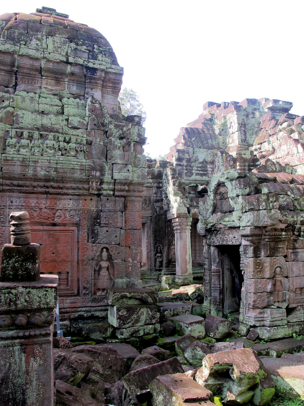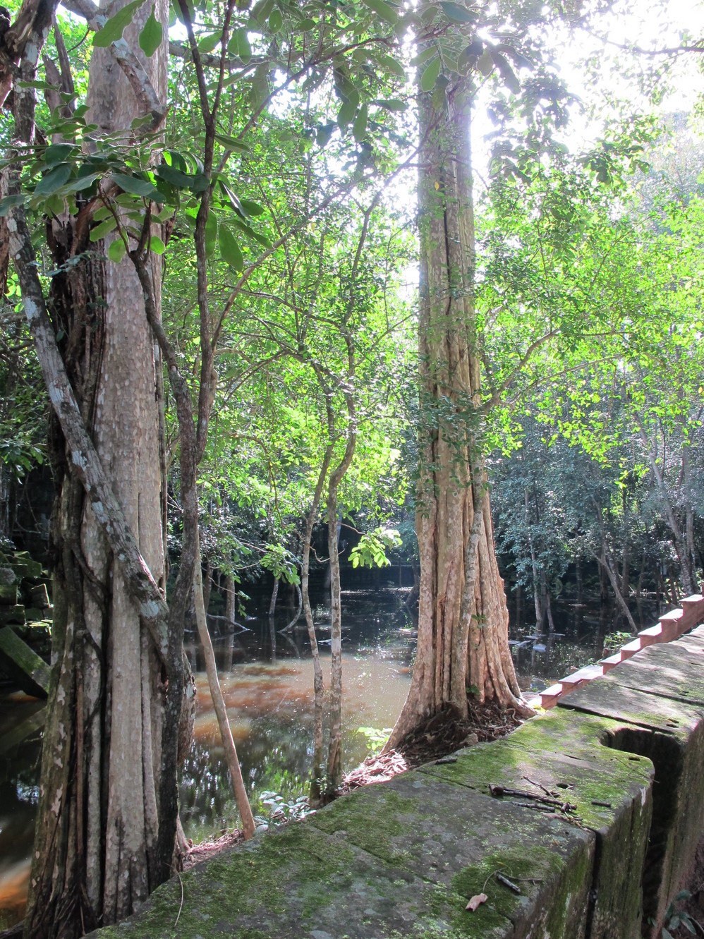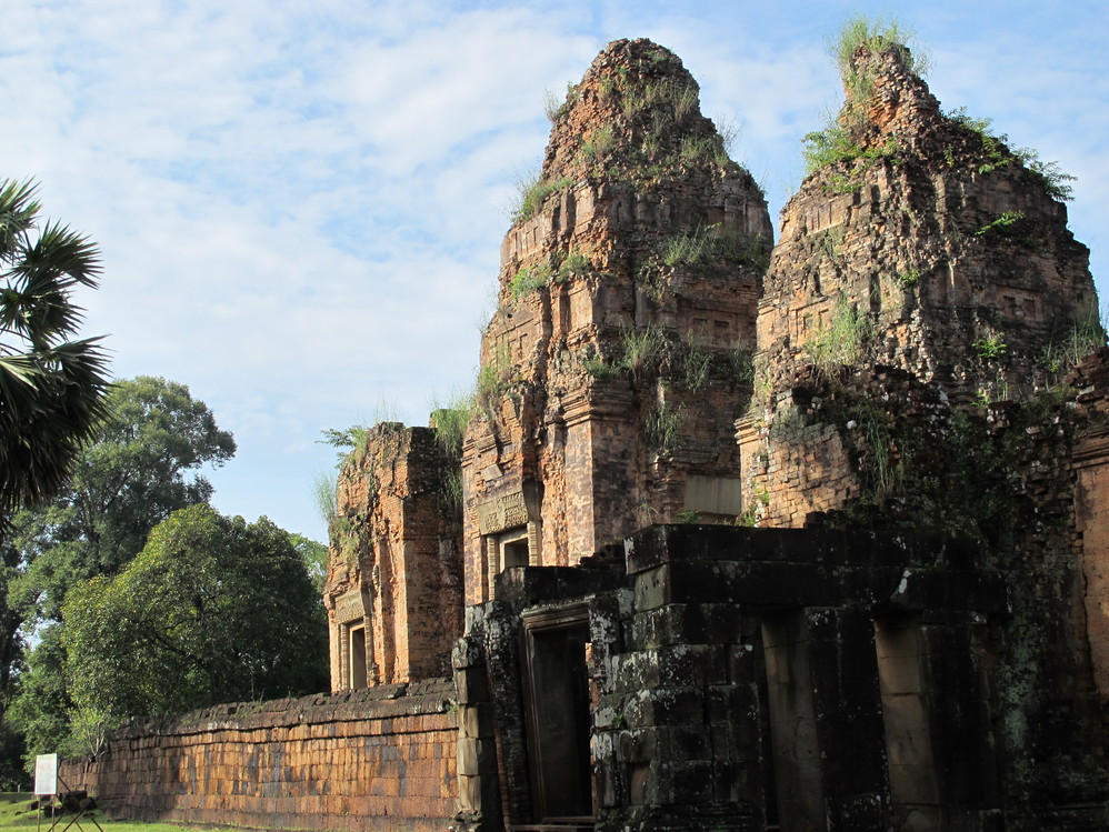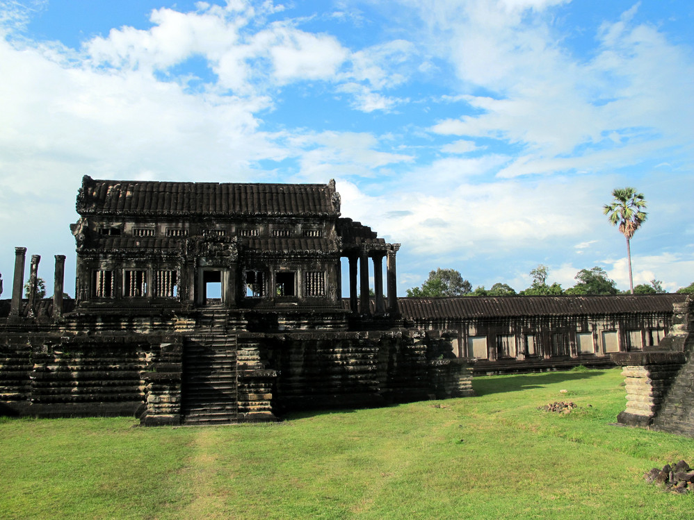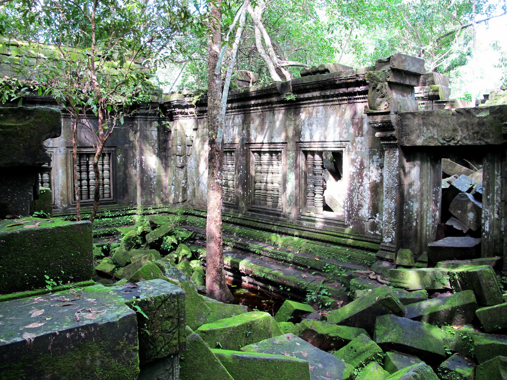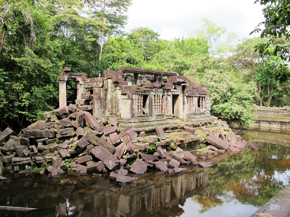 第一天给我最大的冲击是人文景观,自然景像倒没太多特别,是想像中的东南亚 景色,我们大家一直在追问的是吴哥窟 的历史,它为什么会建在那里?为什么后来又衰落了?里面的人都去了哪里?看起来它的建筑材料不坚固(就像我们这里的高岭土)但却硬生生的就是这样堆砌起来,一次次地倒塌还是要这样做,在崩密列看到的景像更使我们觉得好多地方可能当初就是在一次次倒塌失败后放弃不建的,而不是后来给岁月摧毁的。但是我们手头所有的资料都没给出一个答案。