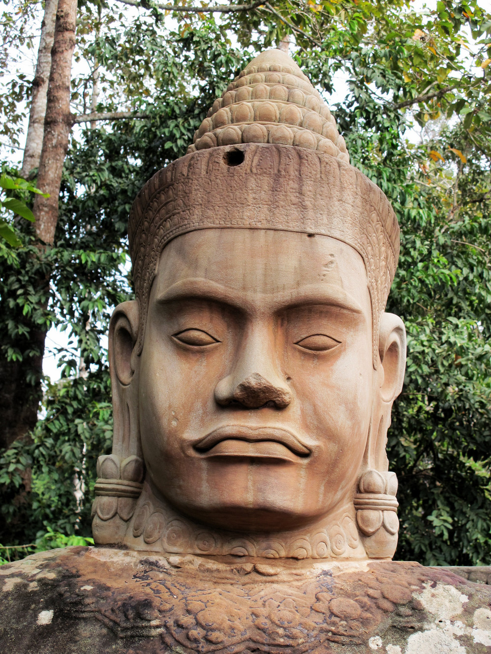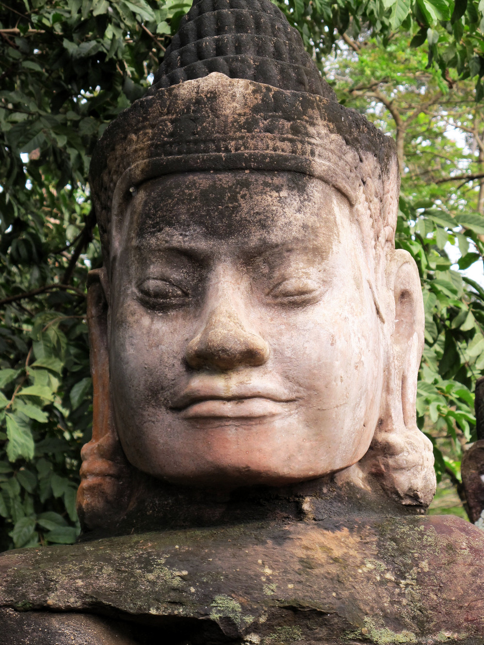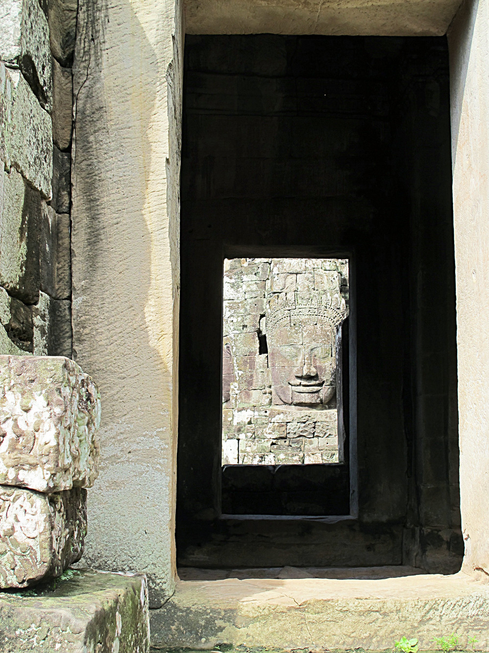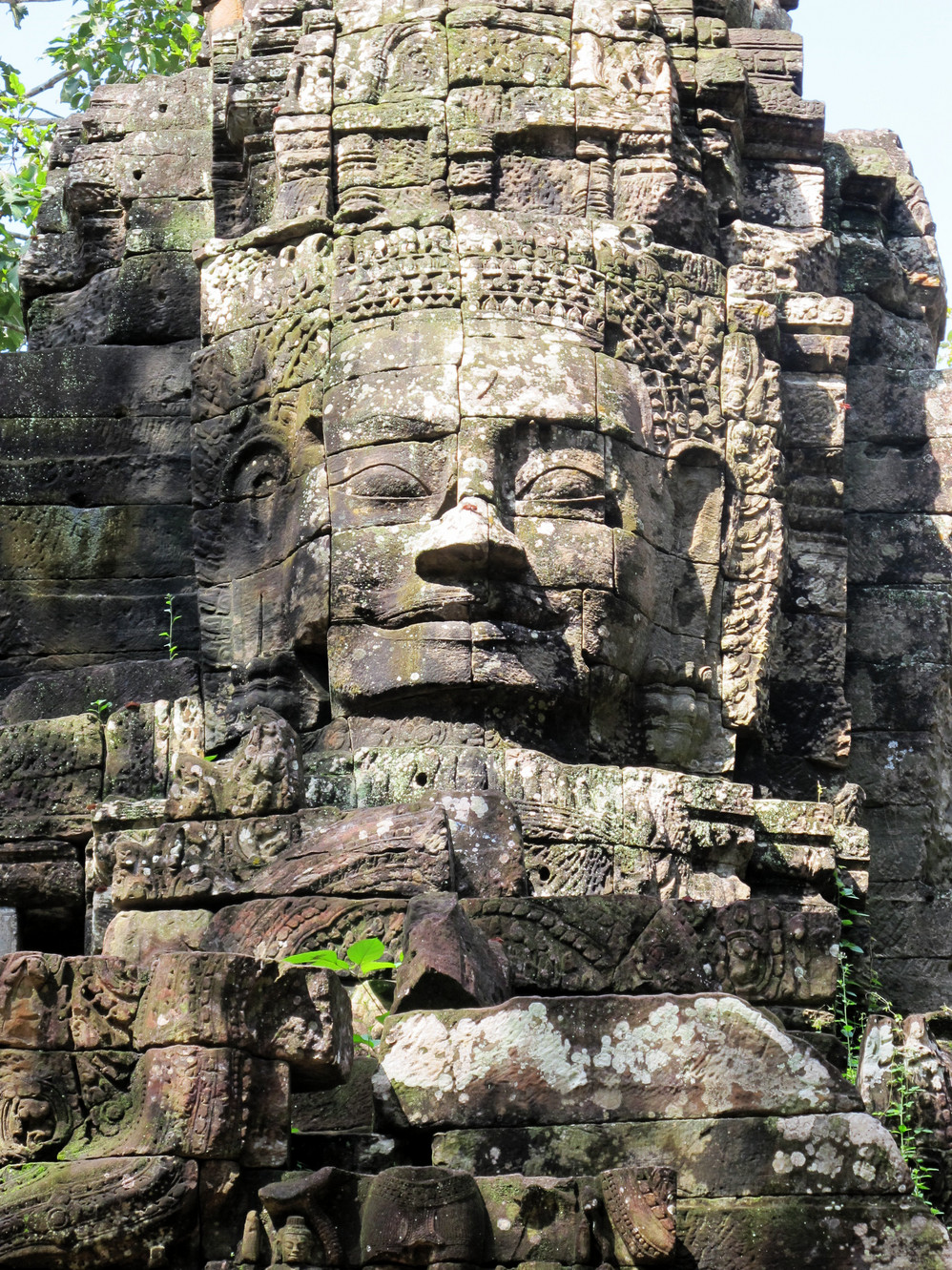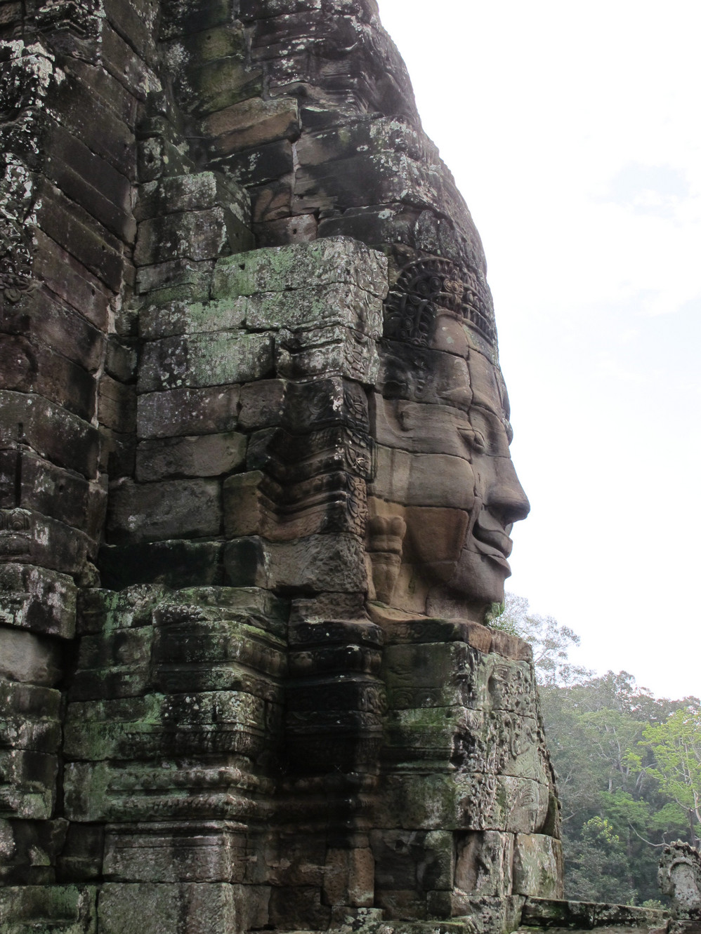在巴戎寺我们身处吴哥国王的微笑包围中。这里有216张四面佛的巨脸俯视着你。如果你不了解那里的文化,你就不能体会这些巨脸笑容的内涵。据说最经典的微笑就在这里,我还冒充了某旅游团友,叫导游帮忙照了一张同国王阗耶摩七世隔空亲吻的照片。