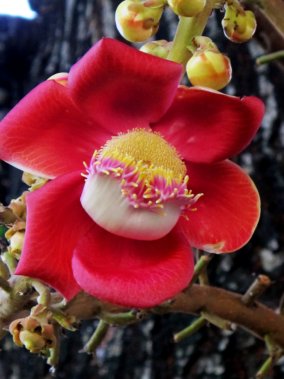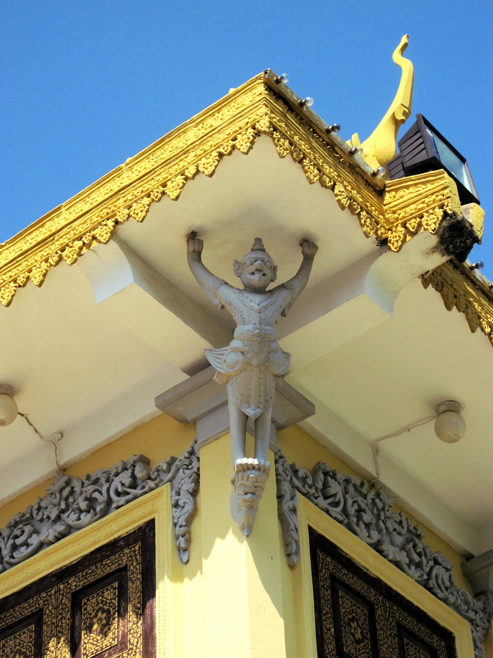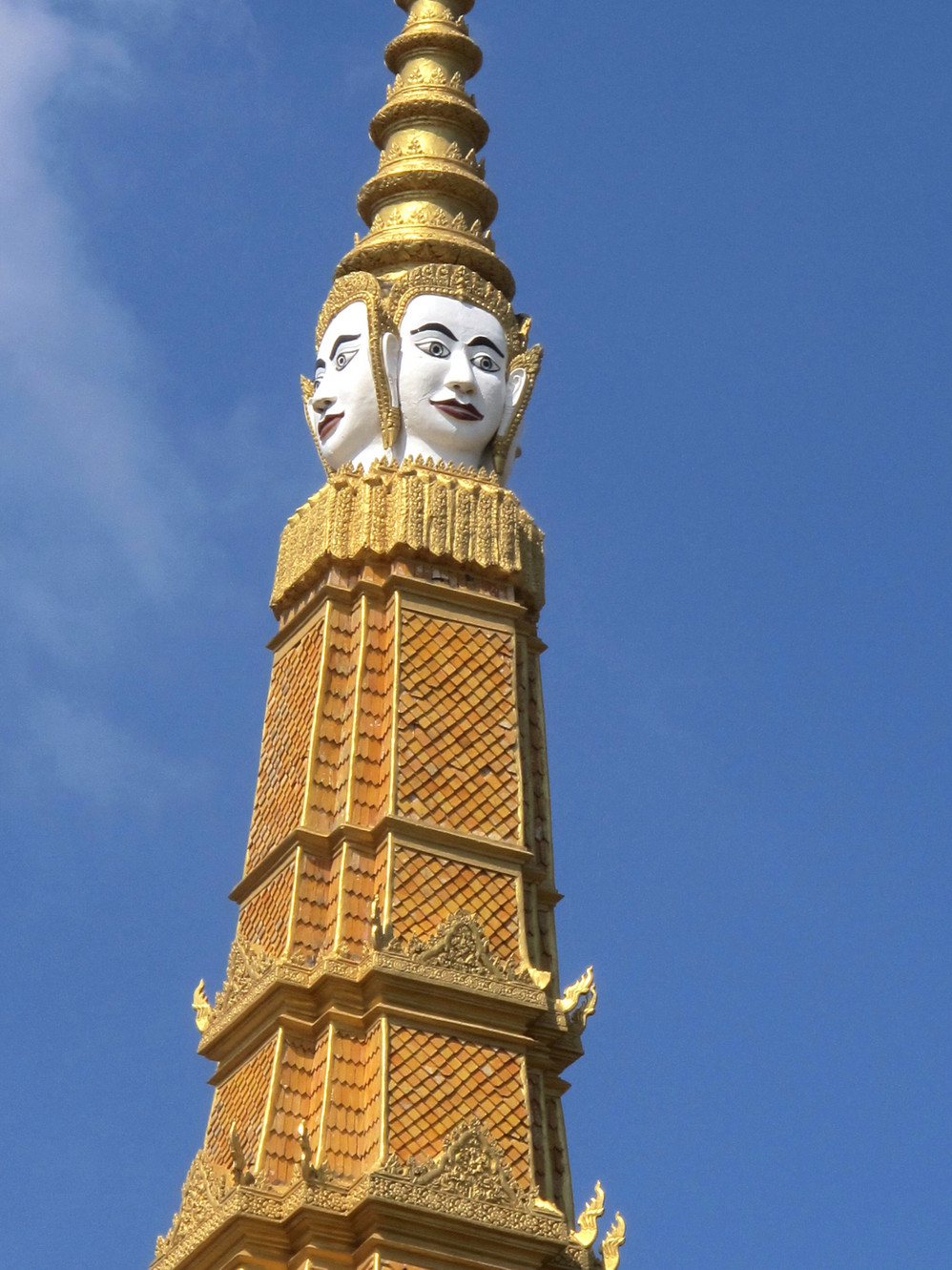 在最高一层的平台上,矗立象征着神话中诸神之家和宇宙中心的5座尖顶宝塔。而其中笔直耸立的尖塔顶部殿堂据说代表“天堂”,游人被要求取下帽子、眼镜,女士不能穿露膀的衣服,排队分批拾级而上,台阶陡而滑,只能手脚并用地爬上去,让信徒在攀爬过程中体会通向天堂之路的艰辛。以前的台阶是没有扶手的,据说1973年一名法国 女游客失足跌落致死,她的丈夫悲痛之余捐资在台阶一侧修了扶手,以避免悲剧重演。人称“爱情天桥”。