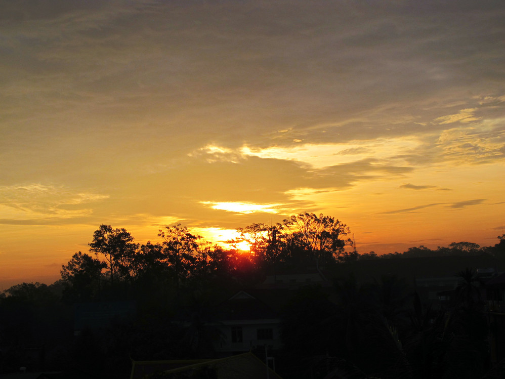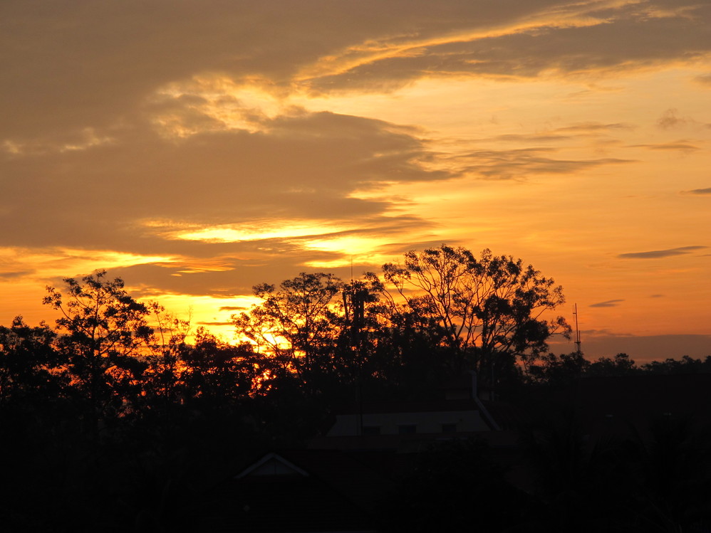在吴哥窟 的旅游就要结束了,下午我们坐上了前往金边 的汽车,三百多公里的路坐了四个多小时,沿途看到好多吊脚楼下面都给水淹了,现在才回想起来的当天晚上是下大雨的,在吴哥窟 却天天却烈日当空,觉得自己同这里还是有点缘分,来时攻略介绍一定要在傍晚时分等看日落,同伴们都是大老爷小姐舒服惯了,都说走了一天到傍晚要赶紧回宾馆,都不愿意待在那里等看日落了,不想却踏破铁鞋无觅处,蓦然回首,那景却在夕阳璀灿处!