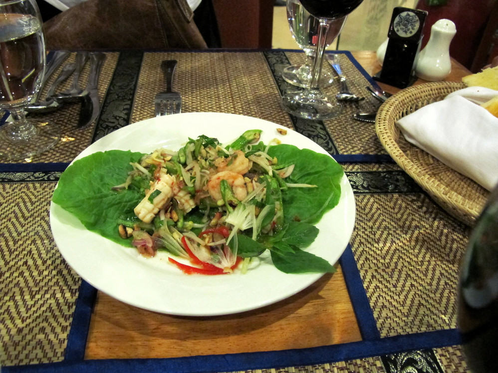 晚上导游还安排我们到一间自助餐厅,(12美金/位,边吃饭边观看柬埔寨 歌舞,歌舞是陌生中带着熟悉,很像中国 的傣族舞蹈,动作简单形象,全场几百号人中,中国 人可能不到50,欧美游客比较多),我们主要是对自助餐的美食极度感兴趣,味道极正!除了没有广东 人至爱的海鲜,其它真是没什么意见,好够地道!