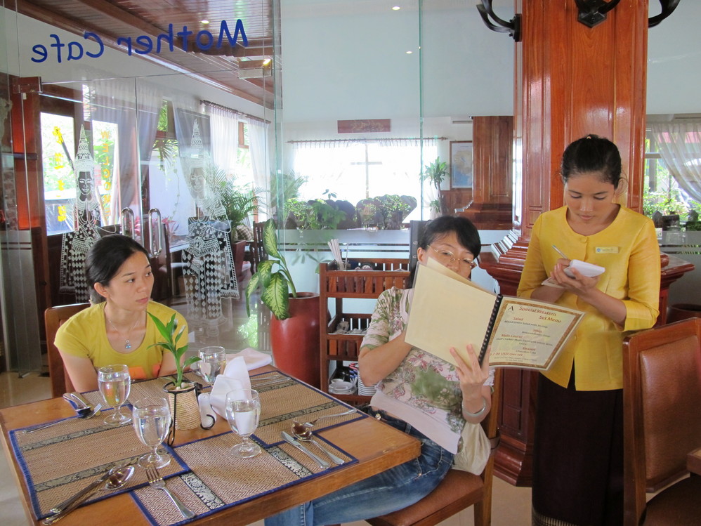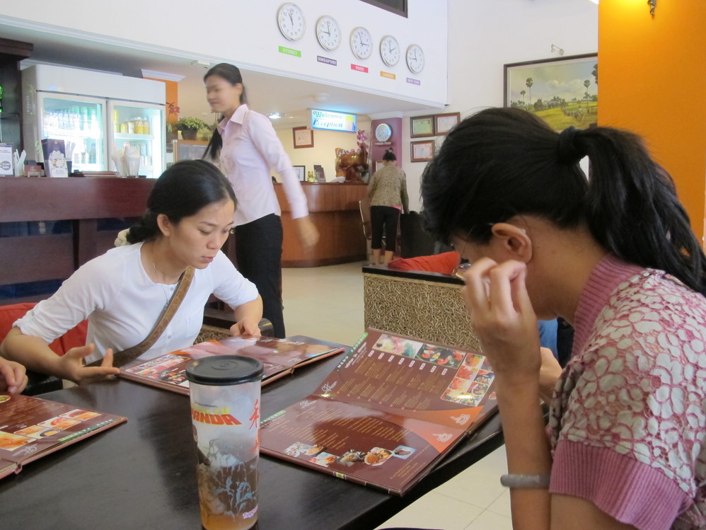 安顿下来,到妈妈之家酒店小小的西餐厅里点了几份萝卜马铃薯清汤、汤面,那清纯的味道使我们已被地沟油污浊的肠胃舒服得真有点恨不得就留在柬埔寨 了!下来的几天每顿都令我们感叹不已:如果把家里的车开到这(不用在柬埔寨 崎岖的公路坐着TUTU车颠簸),有一栋小小的别墅(可在柬埔寨 广袤的平原上坐拥万亩良田),餐餐吃着成份明白的食物,唉,足已!