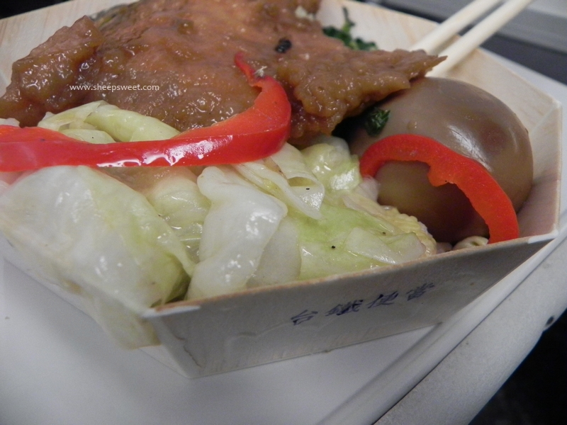 久闻了台铁便当的名气,虽然搭乘高铁,我们还是在月台买了台铁便当来高铁上享用。其实台铁便当只是胜在经济实惠,性价比很高啦。有60、80、100NT,三个档次的便当可以选择,都很便宜啦,买到时候只剩下80NT的排骨便当了,排骨非常大的一块啊,看着就很有食欲,配菜有卤蛋、包菜、芥菜、小咸鱼干,分量很足,以至于我剩了一堆白饭没吃完。
