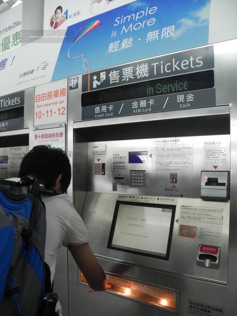 从台北 车站-高雄 左营的高铁,有耗时1个多小时和2小时两个时间的车次可以选择,价钱一样。去程我们是买的对号座票,1490NT/人,回程在自助购票机上买的自由座的票,1445NT/人。不像内地买动车票,高铁不需要实名制,只要用现金or银行卡就能买票了,而且也没有像内地这样行李啦什么的过安检,一个检票员检了票就能进去搭车了!另外所谓自由座就是进了专门的自由座车厢好像公交车一样可以随便挑空位坐,还蛮有意思的。车速很快,噪音也很大,想在车上睡觉的估计睡不着了!