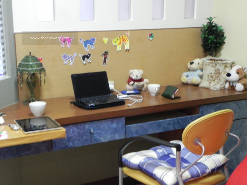这是书桌,笔电是老板留下来给我们上网的。