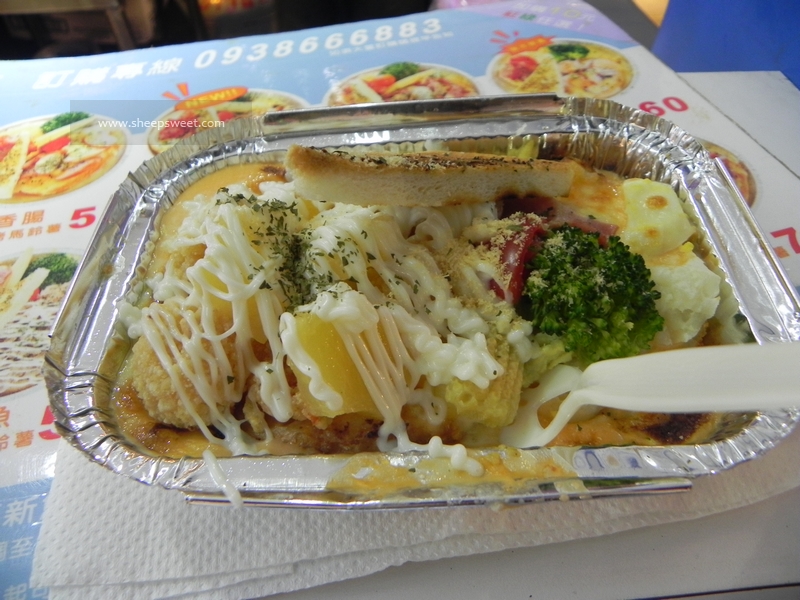 我点的是夏威夷 凤梨虾球口味的,才60NT/份。看起来很棒吧,看卖相很像餐厅的美食,哪是路边摊啊!不过童叟无欺,这真真是路边摊哦!