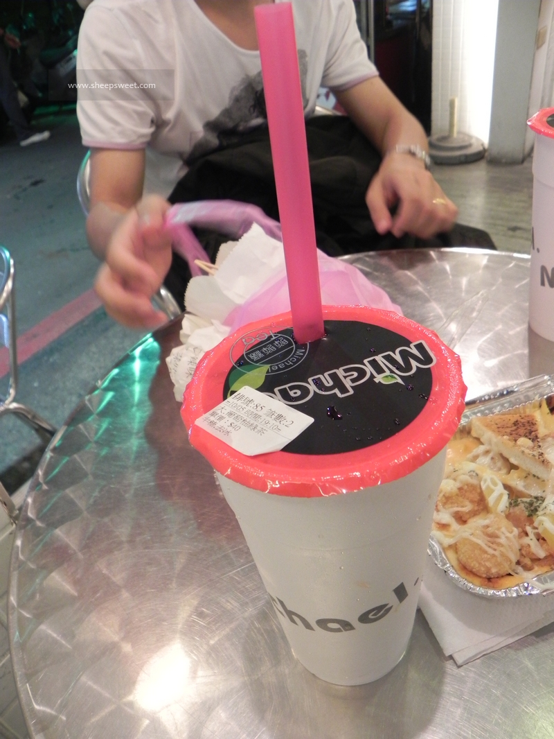 买了两份路边摊,到对面的michael胖胖杯点杯饮料慢慢享用美食啦。