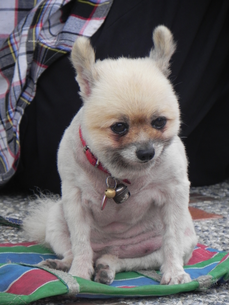 哈哈,看到一直小狗,可能是老狗吧,看起来很老态哇。还一直打喷嚏,它主人就在旁边,三三两两的群众在闲聊,都是些周围做小买卖的商人,或者附近居民吧。