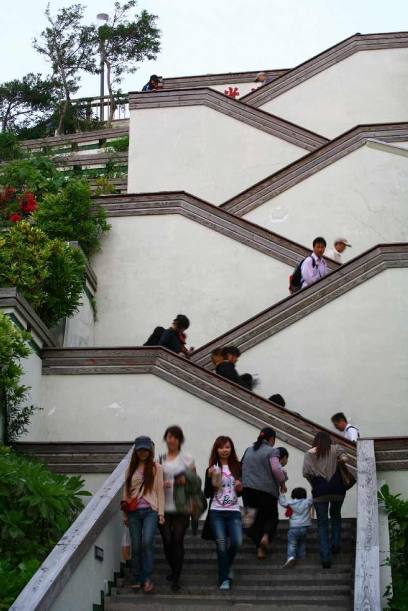 沿着很有特色的交错阶梯走上去就到了位于悬崖峭壁上的打狗英国领事馆 。