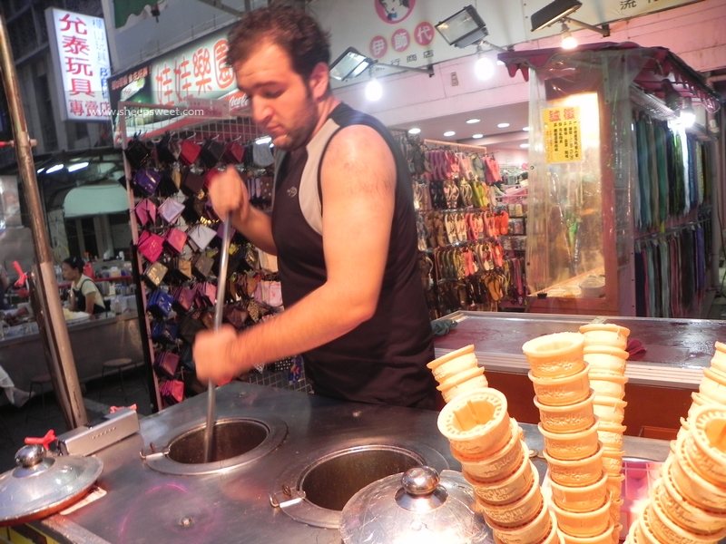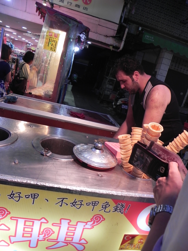 这个土耳其 冰欺凌的老板很卖力地在捣鼓冰欺凌呢,打得广告语是“好呷、不好呷免钱!”,哈哈,想象一下一个老外说这台语,多新鲜啊。