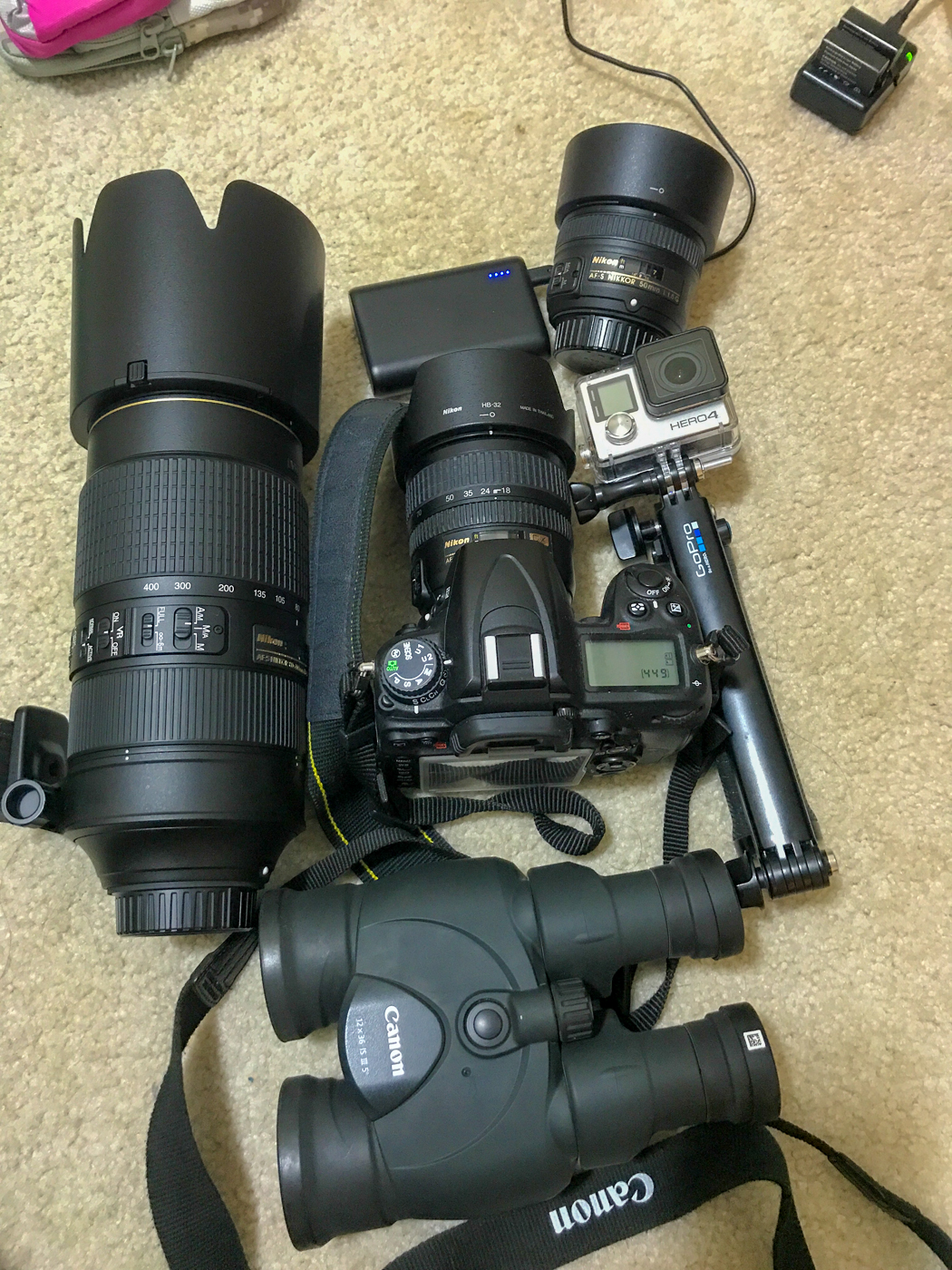 我还准备了50mm定焦和gopro,这几个用的并不多,就不多说了。下图是我准备的摄影装备图。