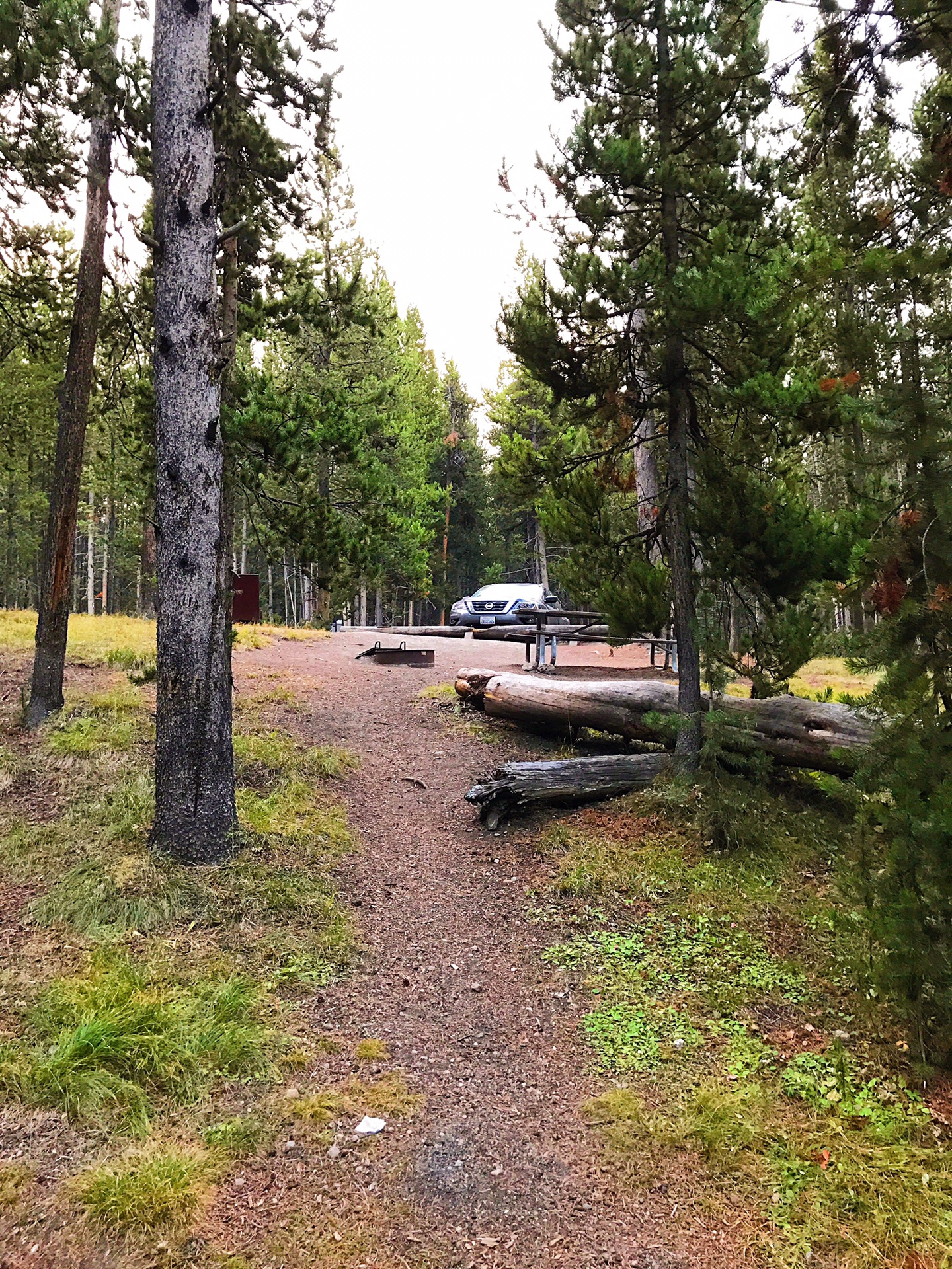 我们之后到了第一天的露营地 Bridge bay campground,由于我们到的时候已经快晚上九点,天已经全黑。第二天早上走的时候太阳还没出来,所以对这个露营地印象不是太深。也就不能说太多了,我们选的是Tent only,相对而言营区比较小,但没有和房车挨在一起所以是相对来说比较安静。晚上接近零度,不过我们保暖做得比较好所以没什么问题。对了,营区的星空很漂亮,虽然没看到银河比不上夏威夷大岛,但看到群星璀璨是没问题的。