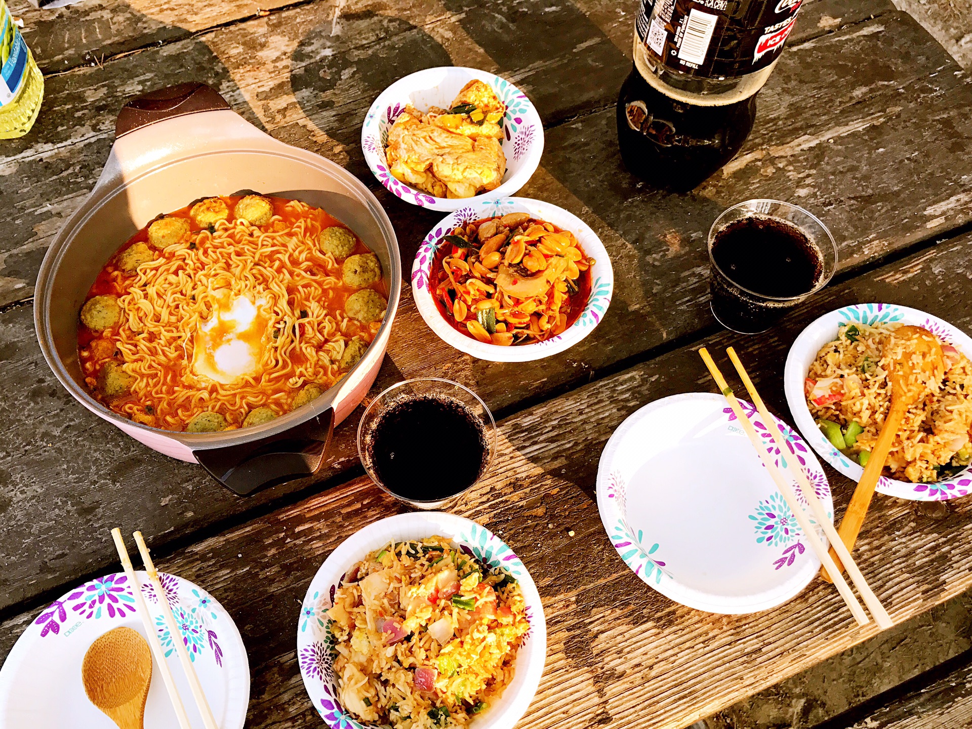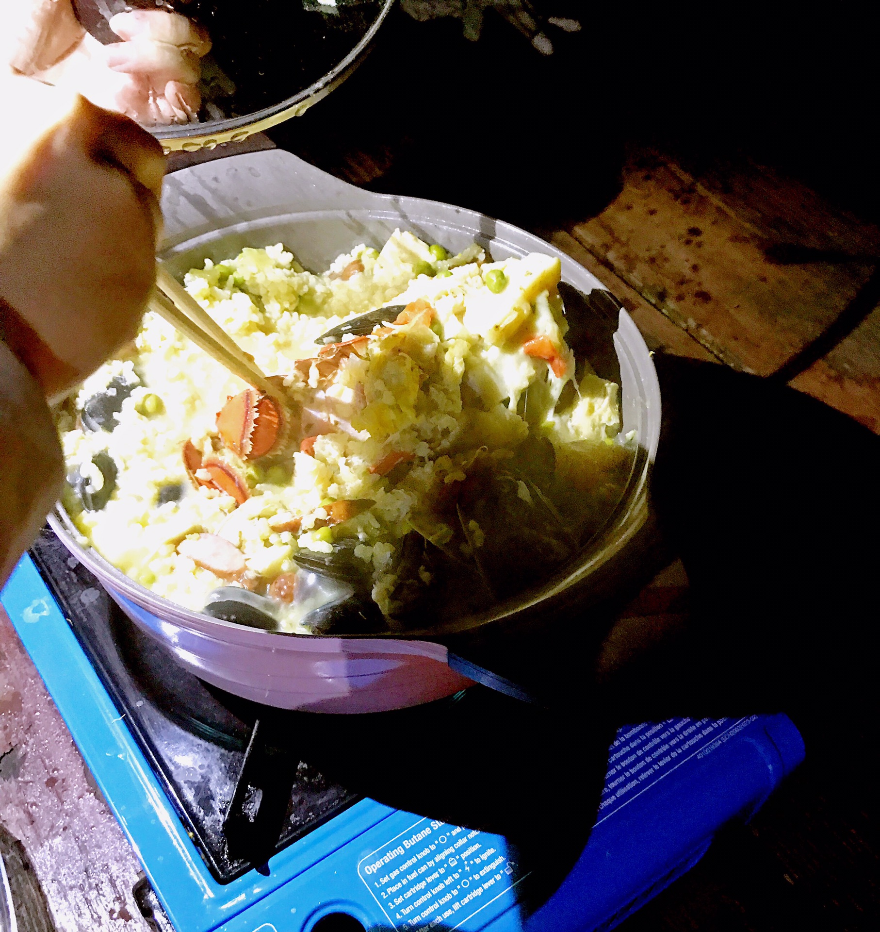 第一天在露营地的晚餐,LP准备了海鲜饭,还有一只大龙虾