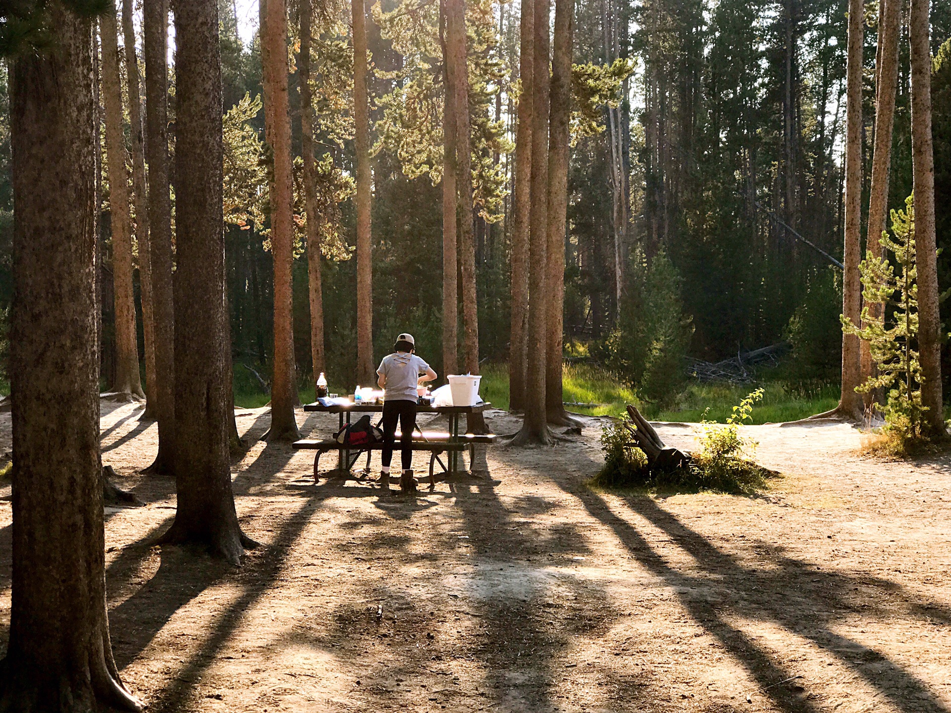 这次去黄石玩我们选择的是露营搭帐篷的方式,其实我们半年前已经抢先定好了小木屋(大家要定小木屋一定要提前,至少提前半年以上),后来我们决定把小木屋退掉改订露营地(露营地虽然没有小木屋那么抢手,但还是要提早几个月订,比如canyon village的campground就很抢手)。原因有以下几个:1. 想着索性去原生态的地方,就干脆和自然融入到底;2. 省时间,现对我们仅仅的三四天的行程而言,如果想看想玩更多的东西就得住在园内,要不然光进园就得开半个多小时,比如要看动物就得赶早,但摸黑开进园那些路还是蛮危险的;3. 更关键的是,露营自己做饭吃的比园内餐厅好吃多了