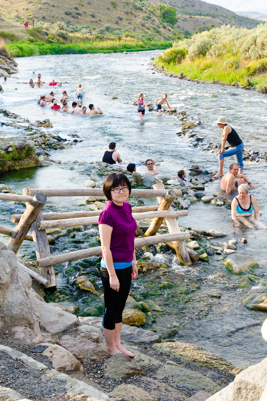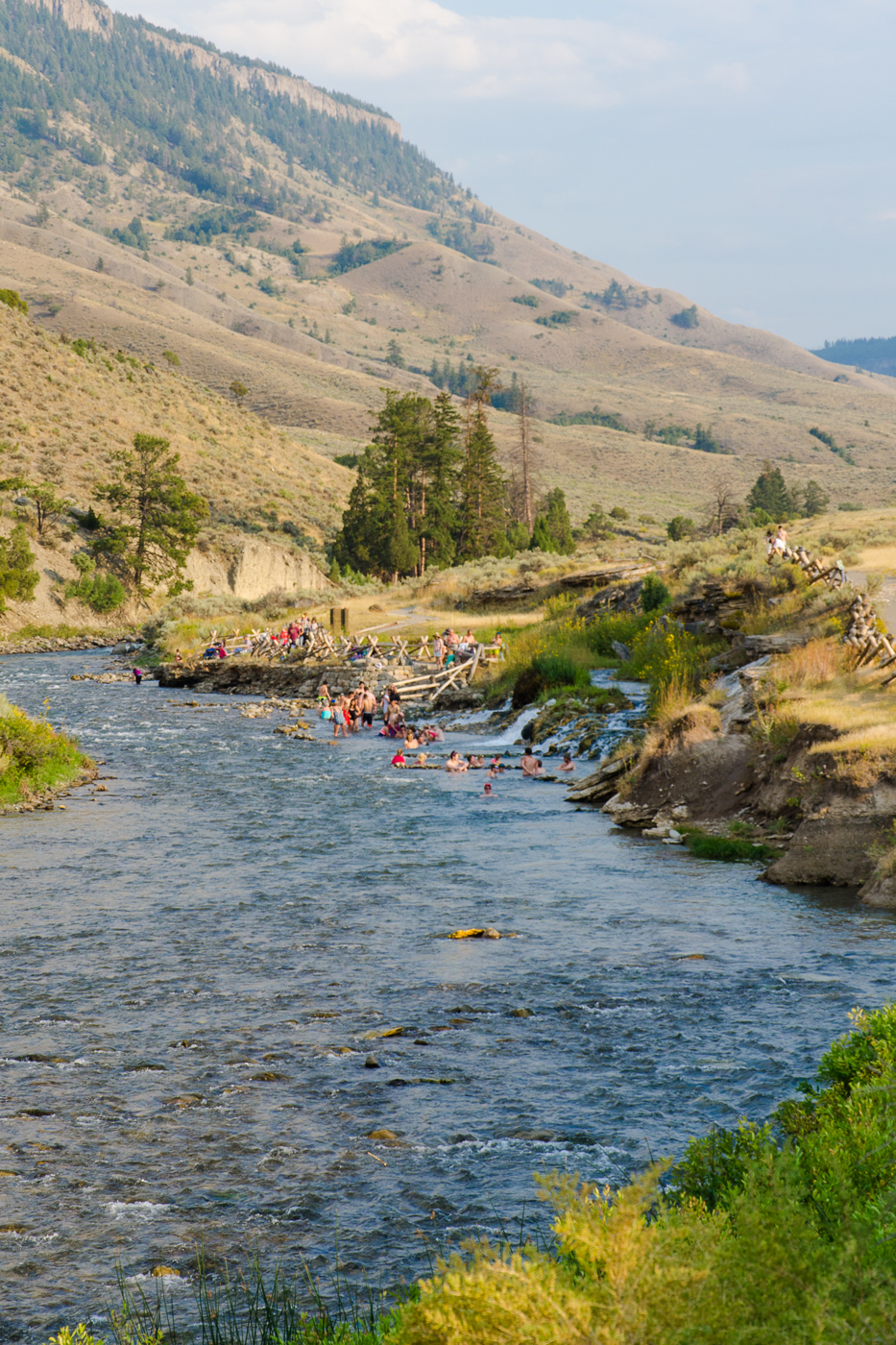 距离黄石北大门不远,在一个不起眼的路边停车处,这条河是蒙大拿州和怀俄明州的界河,它最大的特点是--冰火两重天,滚烫的温泉水和冰冷的Gardner River在这里交汇,从而在这个交汇处就形成了一个温度适宜的天然泡温泉的场所,也是黄石公园里仅有的两处可以露天泡温泉游泳的地方之一