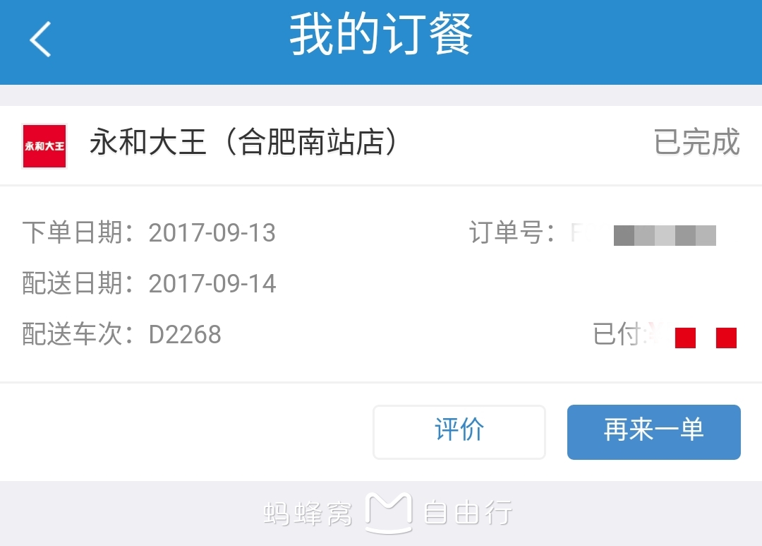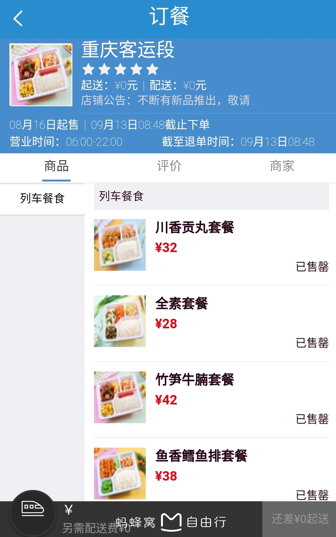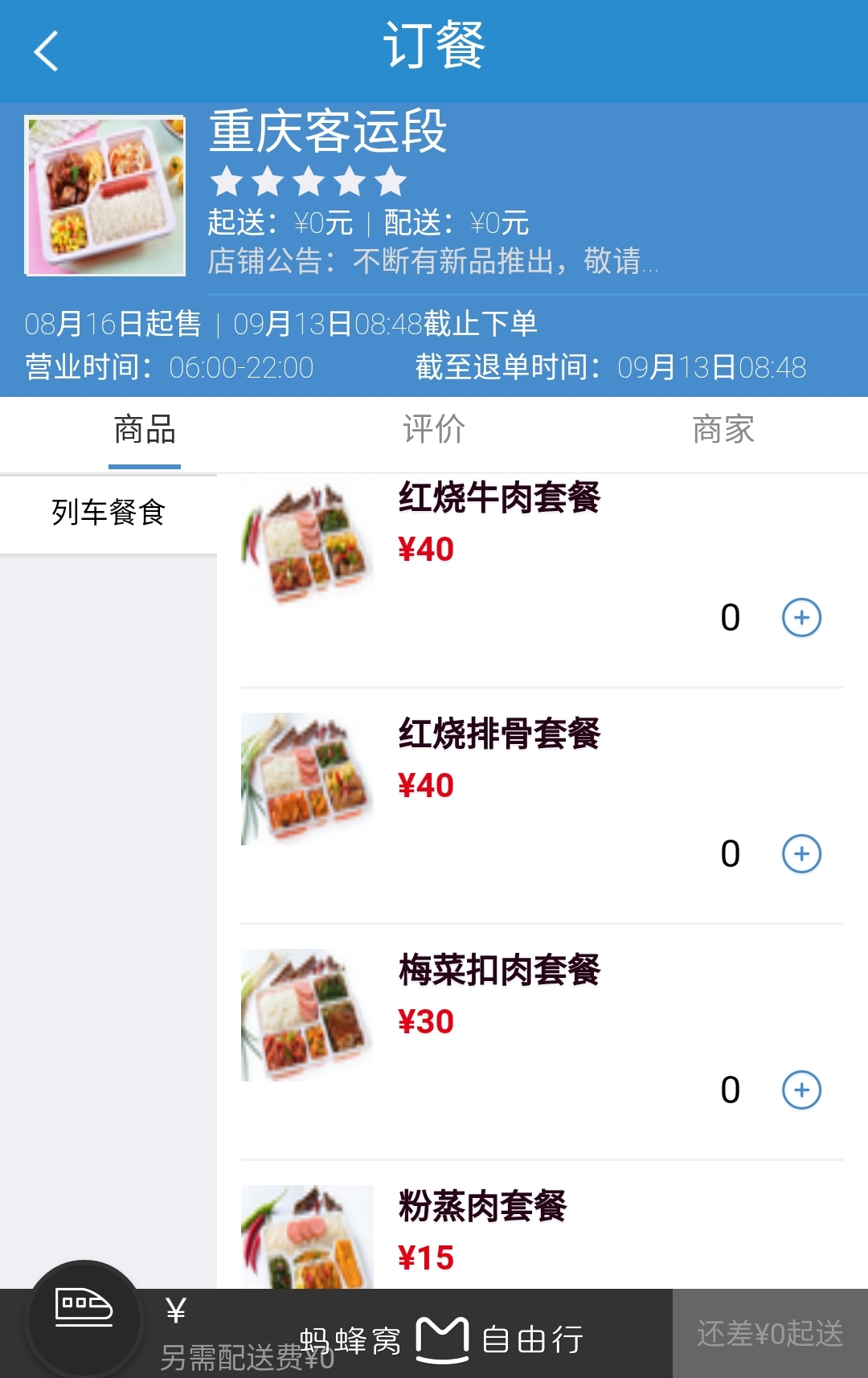 以小甩查询的车次为例,提供的订餐方式有2种,一种是铁总自营的冷冻盒饭,一种是途径站配餐!