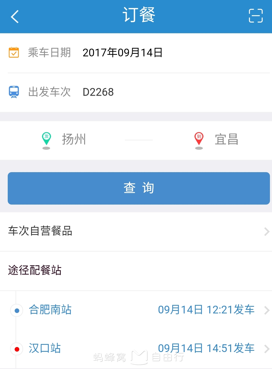 此处要注意,不是所有车次都开通订餐服务,查询后未开通的会有提示!