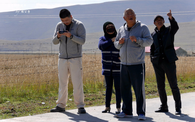 在祁连山脚下,一大片草原牧场,偶遇一家子好奇的老乡,他们两口子刚刚去县城里接他们正在寄宿读初中的孩子,在家门口被我们的无人机吸引,唠嗑了好一会儿,连他们家有多少只羊多少头牛我们都知道