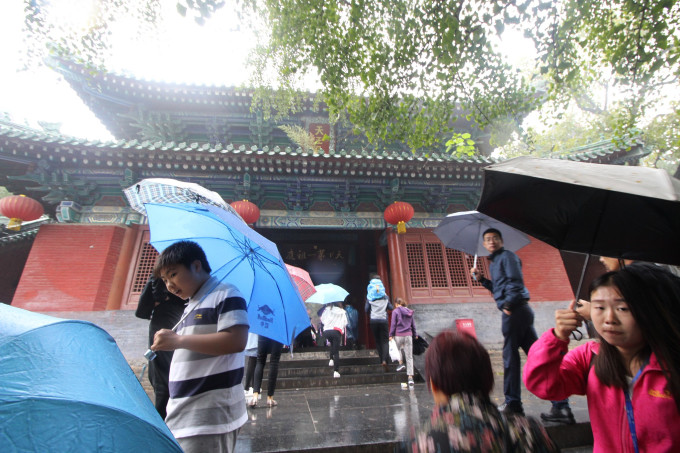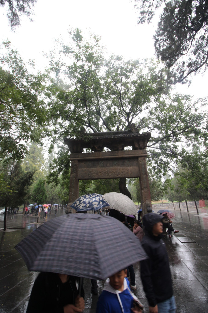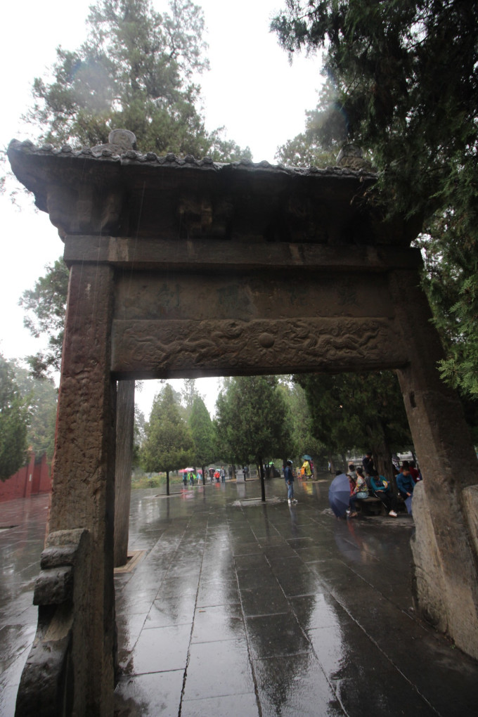 这是才建了40年的牌坊。从少林寺景区入口到少林寺主景区常住院可还有2公里的路好走。别看当天下着不小的雨,其实我看到的当地河流基本上都没有水。