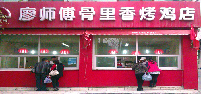 在与老板娘交谈中了解到,新疆 的卤味食品做得好,又合乎内地人口味的是“廖师傅骨里香烤鸡店”,地址:红旗路100号。下午,我就坐157路车到大西门站(这里真繁华,酷似上海 的南京 路),下车后往回走一点,就到了中山 路口;右拐,沿中山 路走5分钟就到红旗路;左拐,往前走一点,马路对面就是。鸡肫53元1公斤,牛肉90元1公斤。我两种一共买了39.50元,