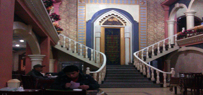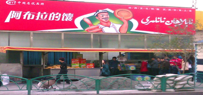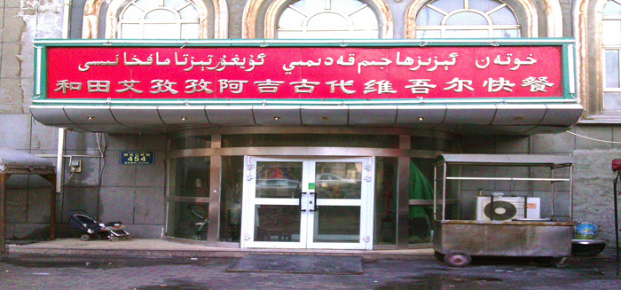 中午,还是到马路对面吃羊肉酸汤。再去鲤鱼山南 路454号,“和田 艾孜孜阿吉古代维吾尔快餐”了解下,上午11点开始营业,下午1时30分后供应烤全羊,