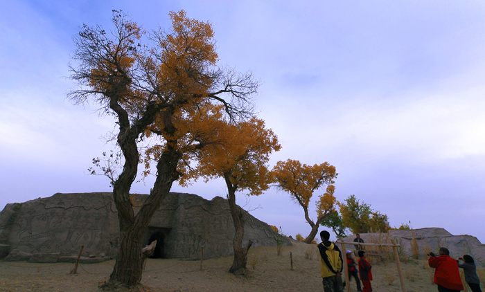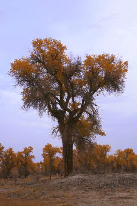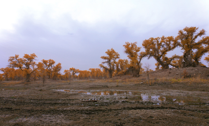 马上开始拍摄“喀尔曲尕”美丽的胡杨。