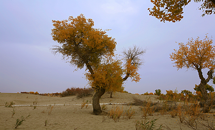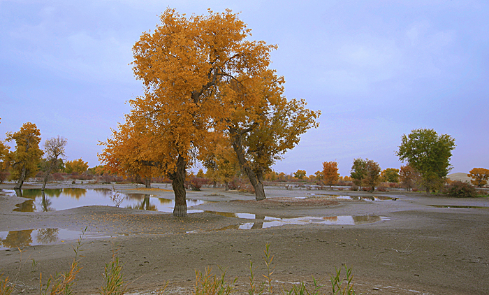 由于今年“金秋北疆 行”之后,得知胡杨最佳观赏期,将在11月前后2周内。金灿灿的叶片,在蓝天、绿水间舞动着迷人憧憬;真巧又遇上了上海 至乌鲁木齐 2折机票的诱惑;于是,深秋南疆 尉犁 县喀尔曲尕乡的金色胡杨之旅得以成行。它是一个集沙漠、胡杨、河流、湖泊于一体,是一个自然景色各异,生态环境优美,摄驴天堂。
