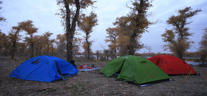 D4: 10月30日,早晨7点起床,先吃了自己煮的奶茶与“阿布拉的馕”,后吃了昨晚余下的牛肉、盐菜和面皮子一起煮成汤面,每人一碗,吃完早餐后三人合影留念,收拾起帐篷。