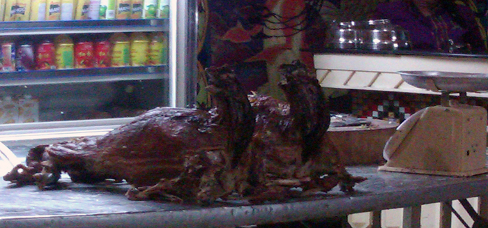 烤全羊88元1公斤,鹅蛋8元一个,自制酸奶3元1杯。之后在“爱的礼物”面包房吃了一块芝士蛋糕和一杯咖啡17元,然后回旅馆休息。晚饭就去回民餐厅吃1只鹅蛋,它是普通鸡蛋三倍,是放在无火的炭坑中煮熟,蛋黄很大,蛋白很薄,还有些透明,撒一些盐食用。还要了两串"非提烤羊"(羊里肌肉),只放了—些盐和孜然,原味,嫩香,10元一串,它的串要比路边的羊肉串大3倍,还吃了一杯他们自制的酸奶3元。享用完美味后回旅馆做了一个美梦。