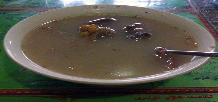 D6: 11月1日,睡了—下懒觉,到10点30分后,又去了维吾尔餐厅,要了一份鸽子汤,整只鸽子,汤很稠,还有鹰嘴豆等,原味,好吃!22元一份。